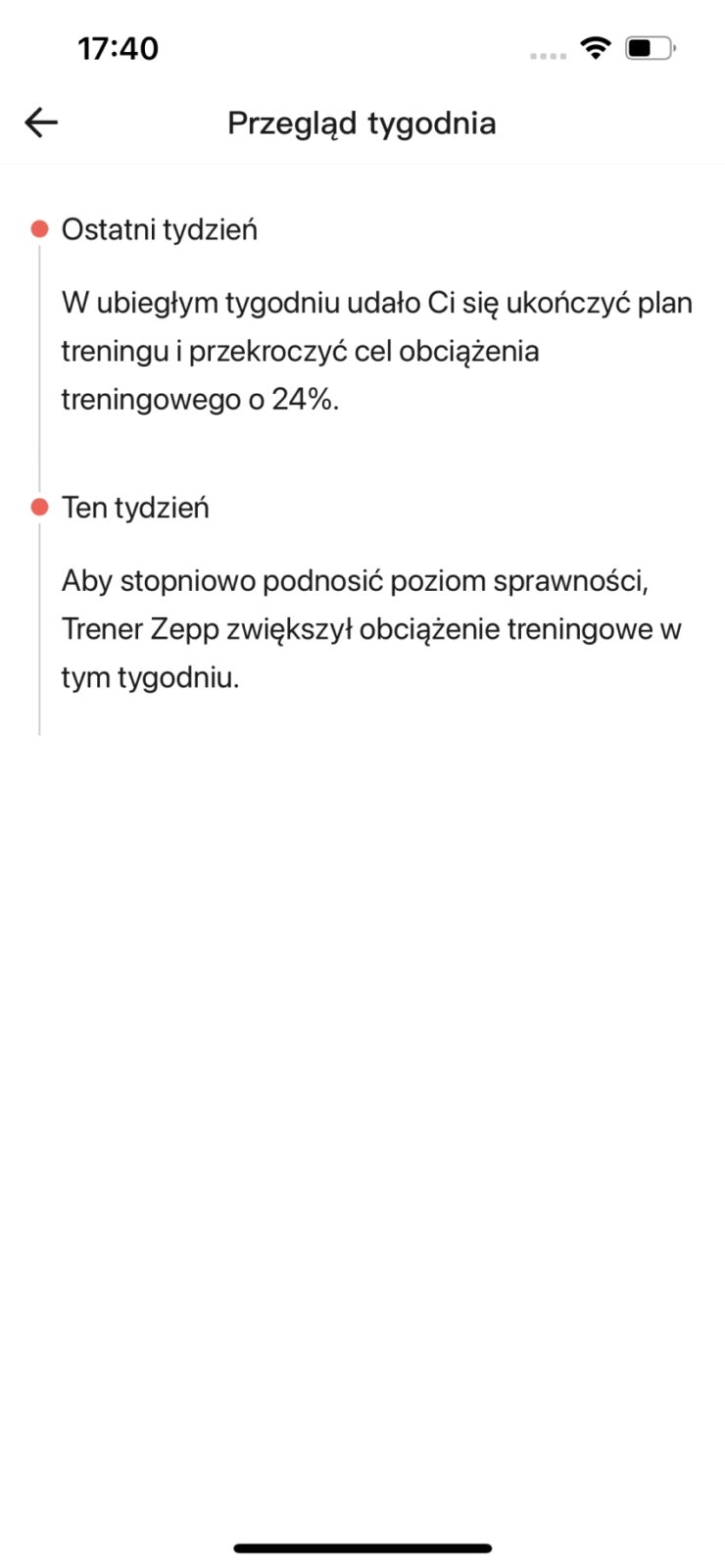 Trener (całkiem słusznie) założył wysiłek ponad plan, więc kolejny trening zmienił się na jeszcze łatwiejszy, który „załatwiłem” szybkim spacerem z psem. Podkreślam jednak, że piszę to z perspektywy osoby o dość dobrej kondycji. Dla osoby, które dopiero zaczyna, taki luźniejszy dzień „aktywnej regeneracji” jest na wagę złota, by jednocześnie nie przeciążyć organizmu, ale z drugiej strony utrzymać pierwotną motywację i budować nawyk.