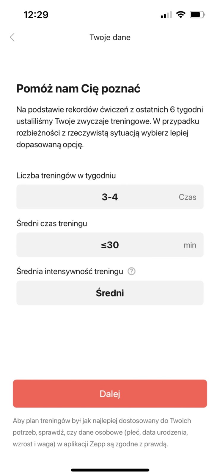 Trener Zepp ułożył mi na start trzy treningi, o różnym poziomie intensywności i różnym czasie trwania. Choć nie jestem zupełnie początkujący, chciałem sprawdzić, jaki wysiłek aplikacja zaproponuje laikowi i na początek dostałem taki oto zestaw: