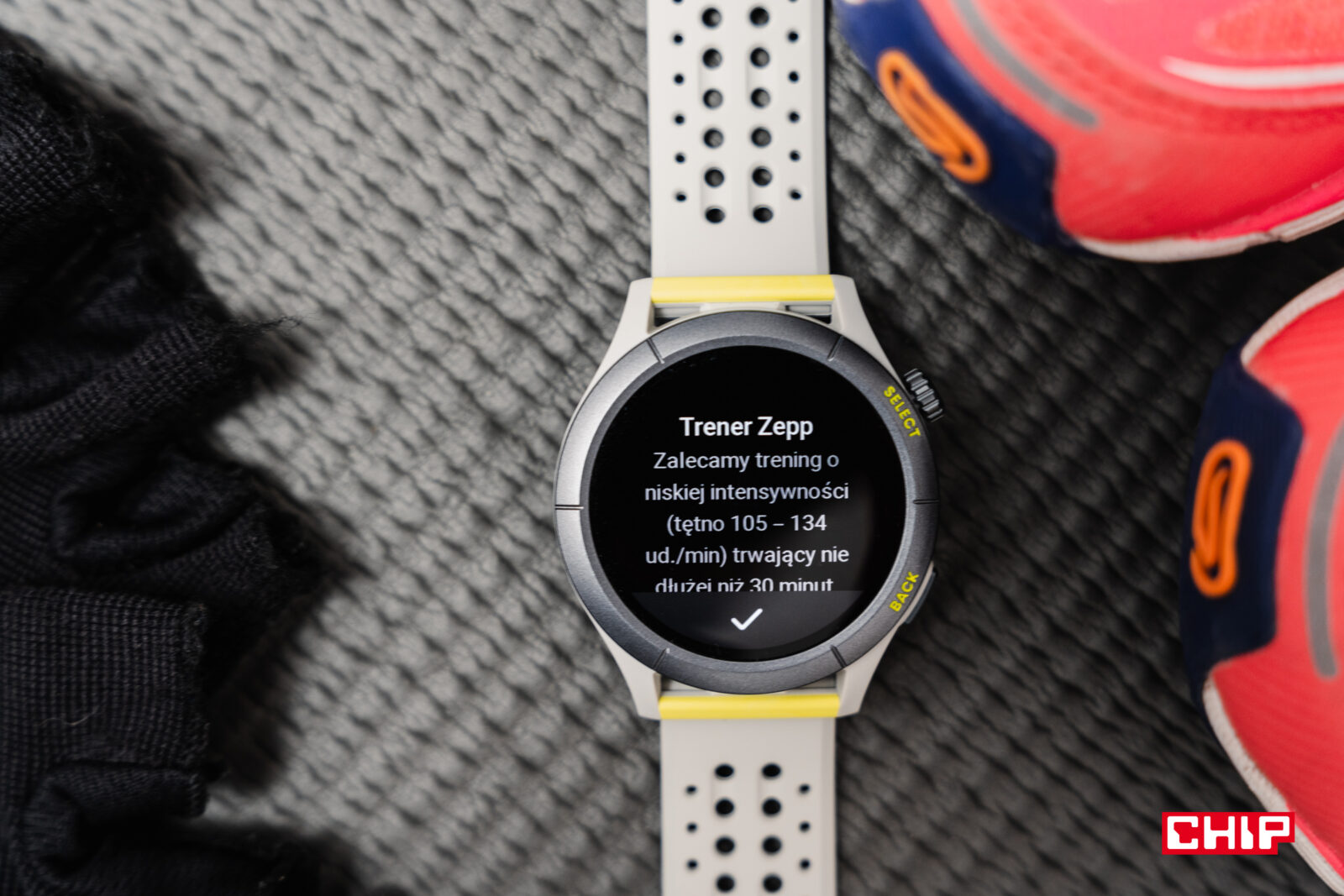 Największą zaletą inteligentnego trenera na nadgarstku jest to, że nie daje o sobie zapomnieć. Każdego ranka dostajemy informację o treningu lub odpoczynku. Aplikacja Zepp wysyła nam też regularne powiadomienia (oczywiście – jeśli jej na to pozwolimy).