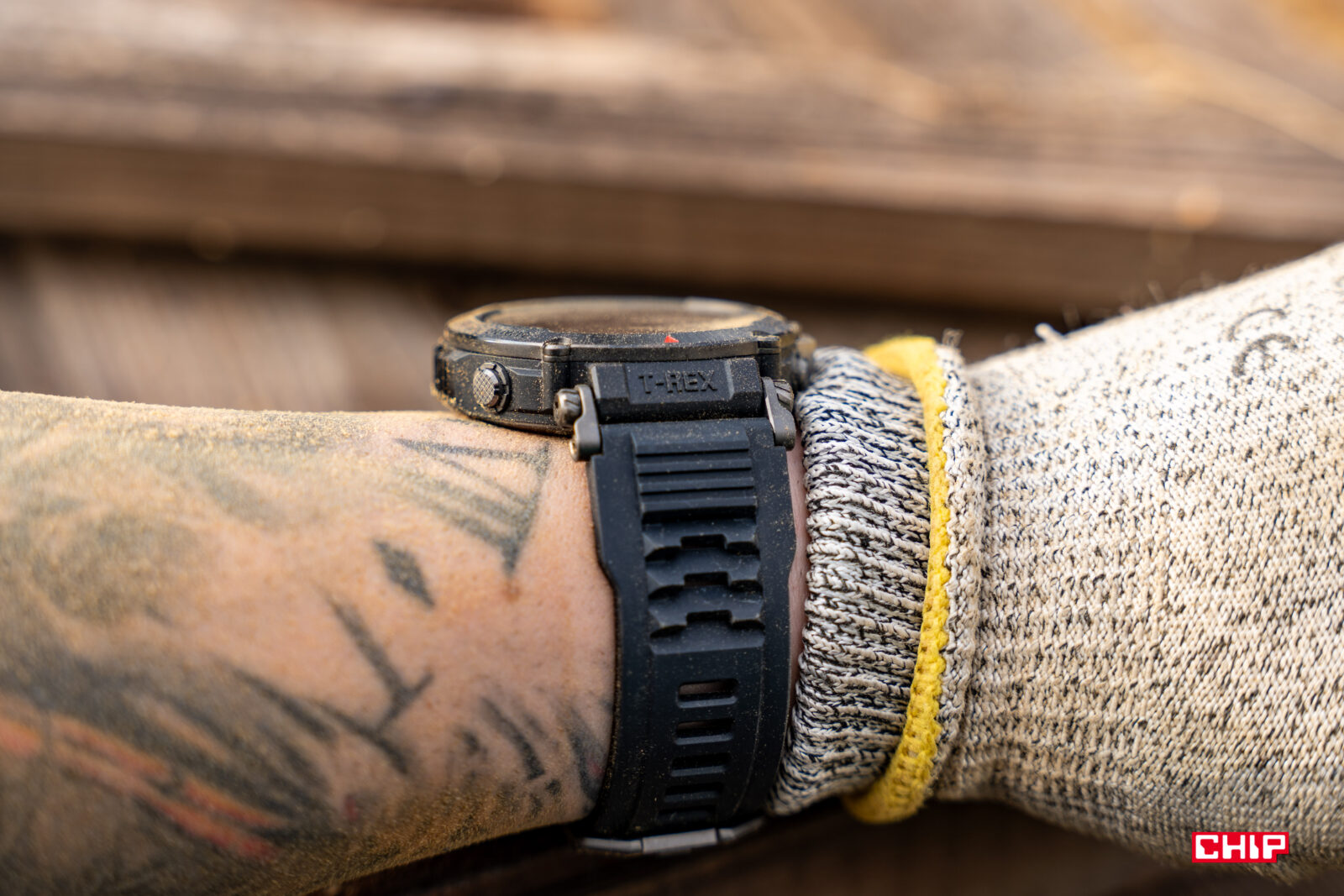 Zegarki przedstawiane jako ultra-wytrzymałe zazwyczaj na takie wyglądają. Są ogromne, ciężkie i w zasadzie to takie czołgi na nadgarstku. T-Rex Ultra na takiego nie wygląda. Na pierwszy rzut oka to zwykły, mądry zegarek sportowy i jest to jego ogromną zaletą.