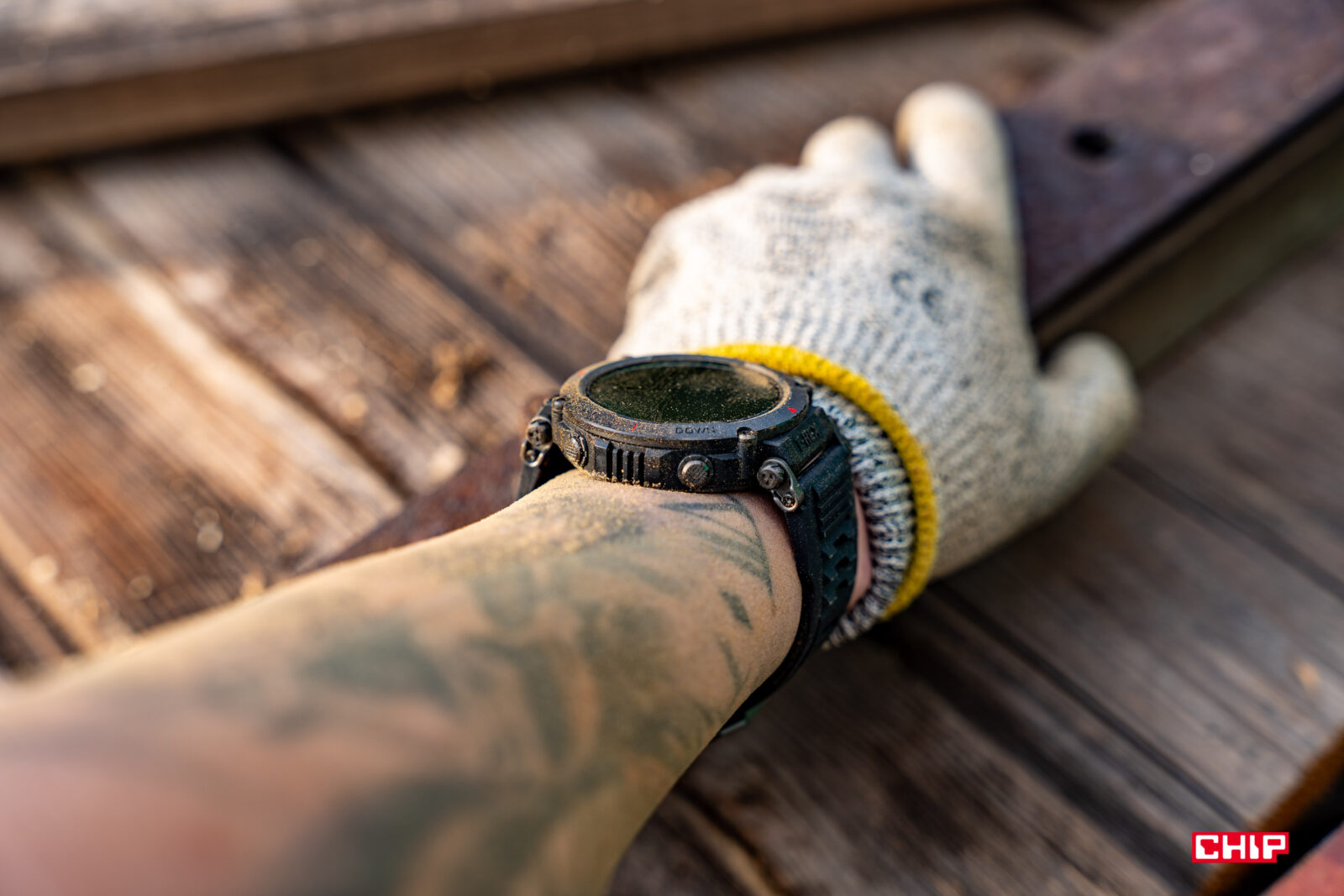 Z kronikarskiego obowiązku dodajmy, że zegarek jest wodoszczelny do 30 metrów, ma certyfikaty nurkowania EN13319 i ISO6245, certyfikat odporności MIL-STD 810G, działa w temperaturze do -40 stopni Celsjusza i ma do tego specjalny tryb, a do tego jest odporny na błoto. Po tym co widziałem – wierzę!