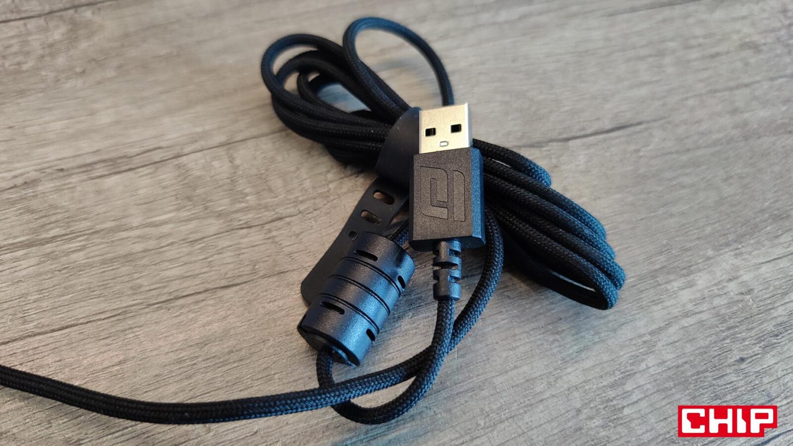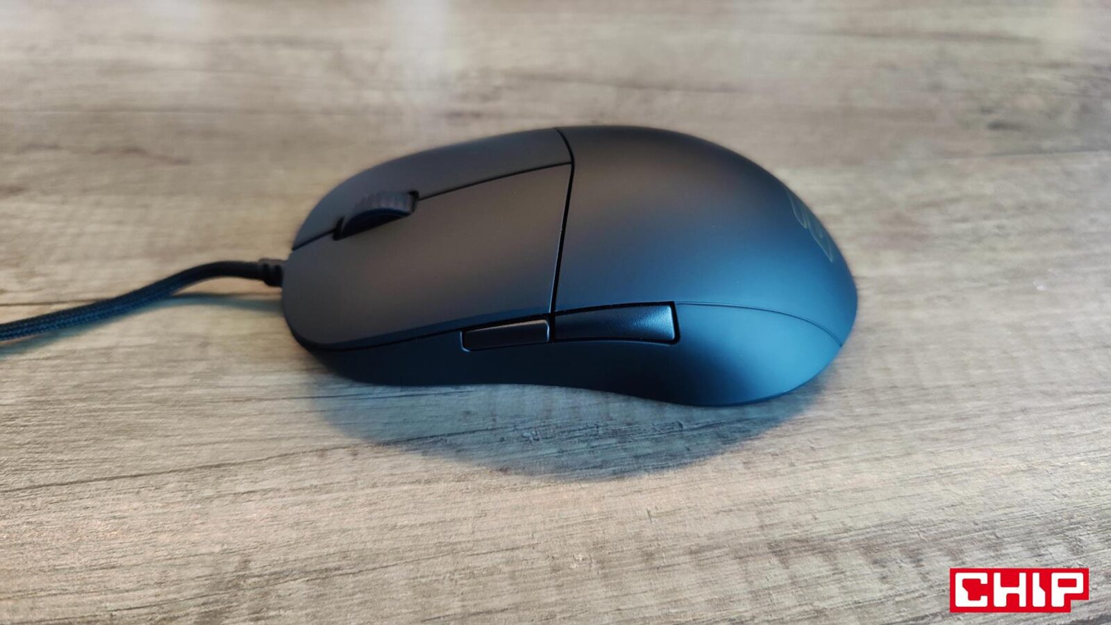 Chociaż myszka do największych nie należy, to wyżłobione do wewnątrz panele boczne tej myszki i tak gwarantują odpowiednio dużo miejsca zarówno dla kciuka, jak i palca małego oraz serdecznego. Przekłada się to przede wszystkim na wyższą kontrolę nad myszką, co jest kluczowe, jak na tego typu model przeznaczony przede wszystkim do grania w dynamiczne gry. Potwierdza to niska waga, ślizgacze z zaokrąglonymi krawędziami oraz bardzo lekki i elastyczny przewód USB w oplocie.