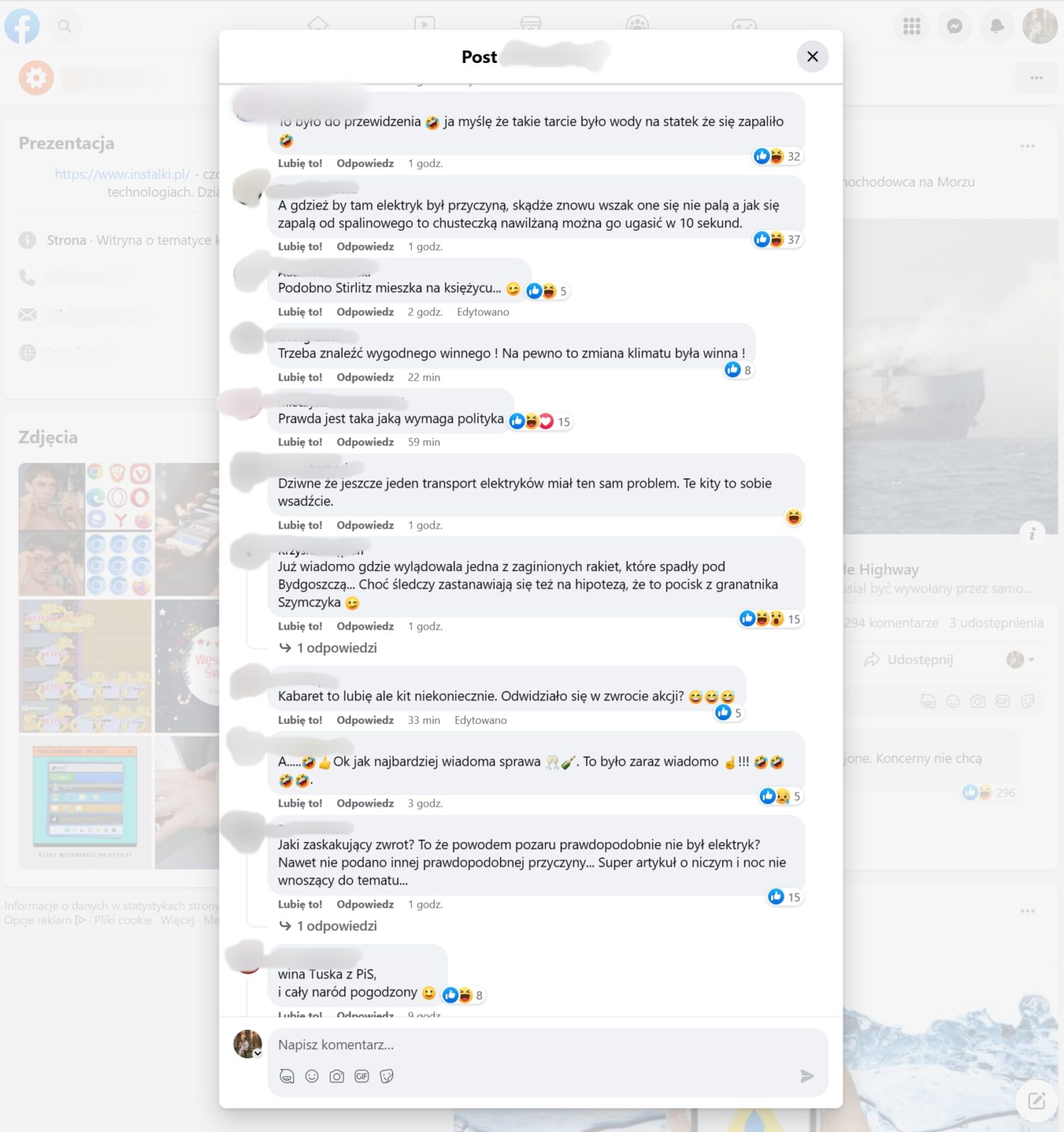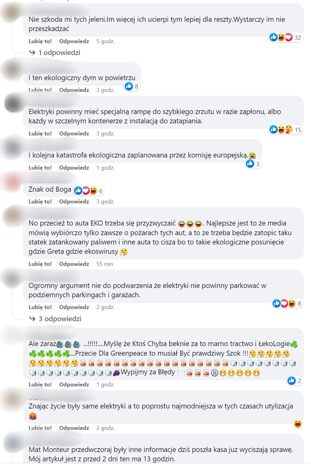 Efekt? Ludzie i tak wiedzą swoje. To komentarze pod postem na Facebooku, dotyczące artykułu o tym, że to jednak nie elektryki były winne pożarowi, w serwisie, który bardzo lubi pisać o pożarach aut elektrycznych, bo to się świetnie klika: