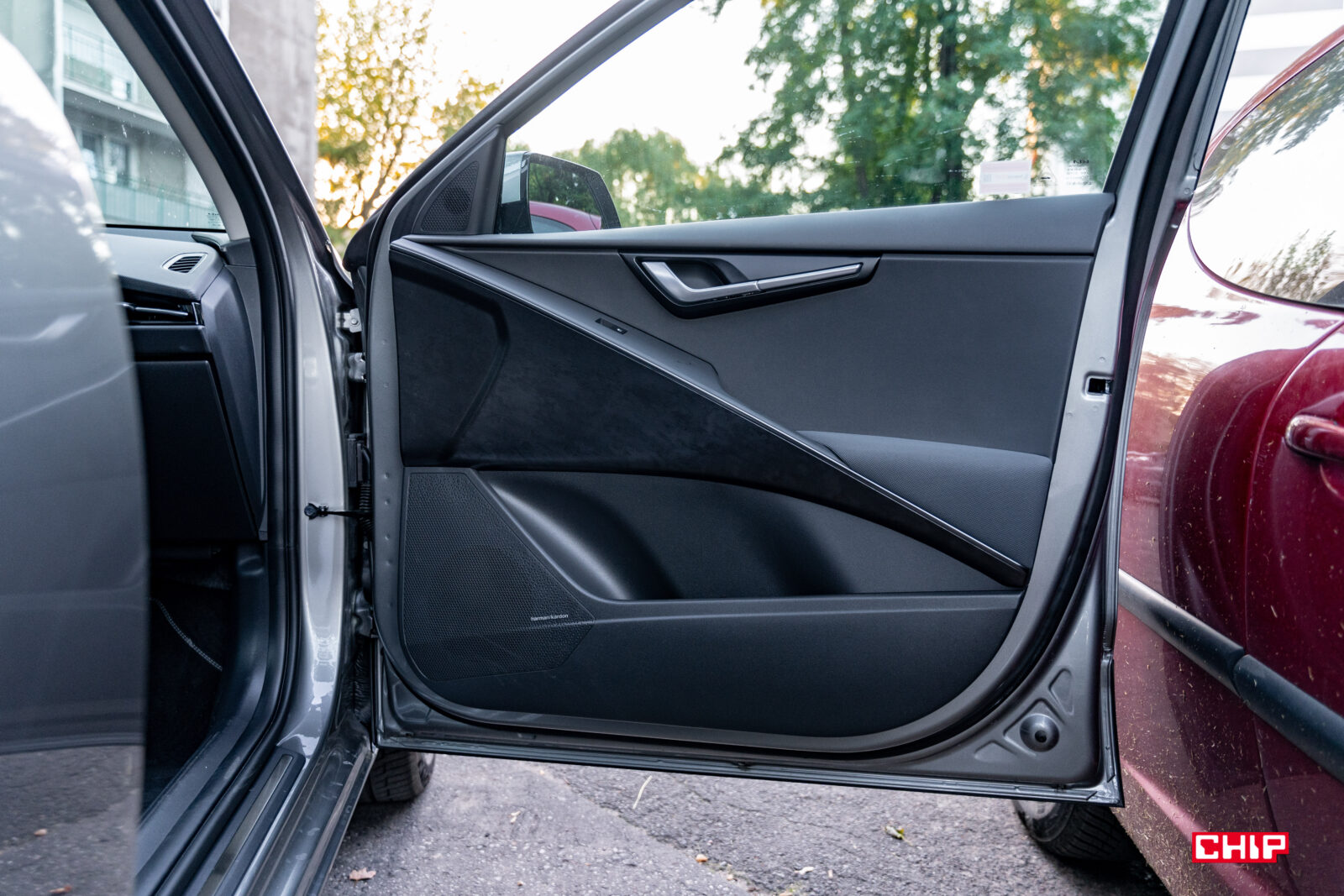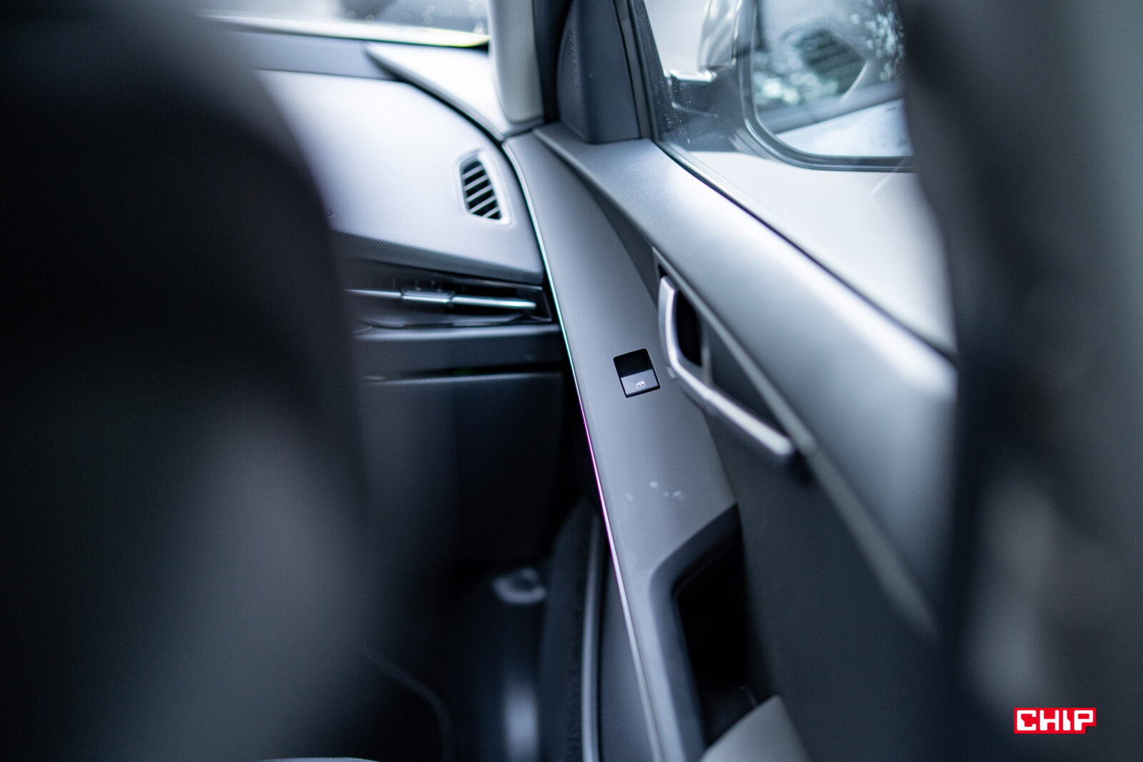 Testowany egzemplarz był wyposażony w opcjonalny, absurdalnie drogi pakiet Premium za 17 000 zł. W jego skład wchodzi elektryczna regulacja fotela pasażera i odcinka lędźwiowego, pamięć ustawień fotela kierowcy, wentylowane przednie fotele, grzane tylne fotele, nagłośnienie Harman Kardon, system zdalnego parkowania z poziomu kluczyka (i wyjeżdża nie z miejsca), system unikania kolizji podczas cofania, aluminiowe nakładki na pedały i… fotel pasażera z funkcją lounge. Prawie tak jak w BMW 7 czy Maybachu i wygląda to tak: