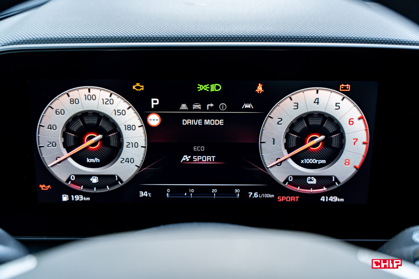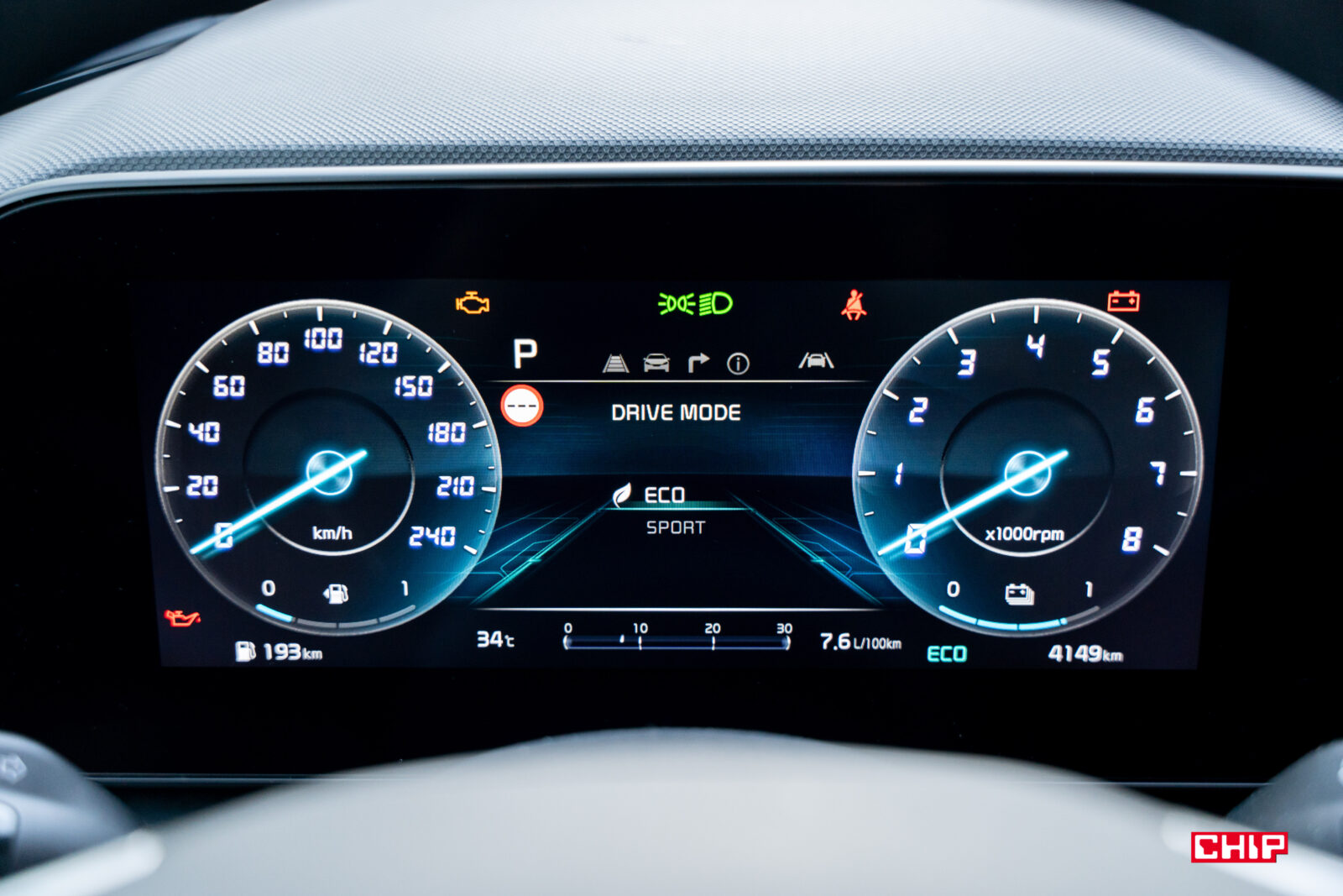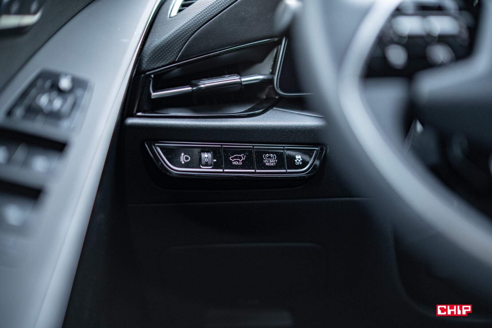 Przyciski sterowania multimediami i klimatyzacją też są w formie cyfrowej. To dotykowa listwa, której widok zmieniamy jednym przyciskiem, dokładnie tak samo jak w modelu Sportage. Ciekawe rozwiązanie i jak łatwo się domyślić, pod względem wygody znajdujące się dokładnie pomiędzy przyciskami fizycznymi, a obsługą na ekranie dotykowym.