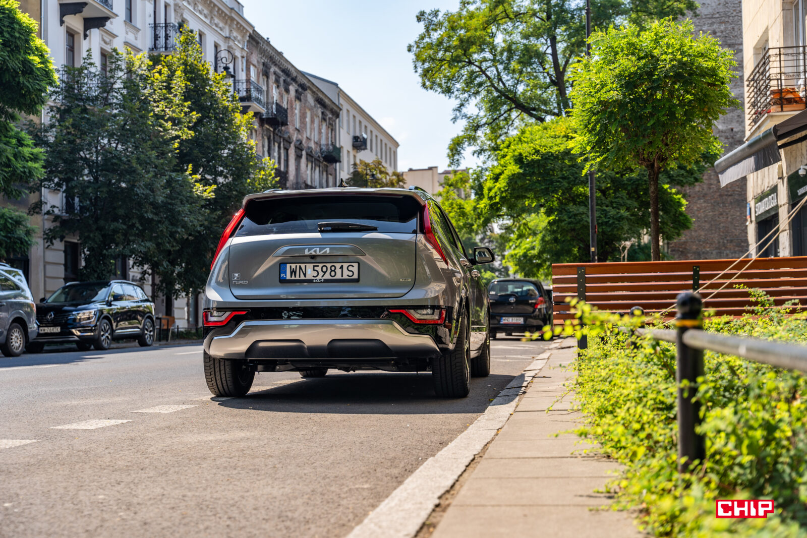 Najnowsza generacja modelu Niro nieco odchodzi od stereotypu klasycznego crossovera. Auto pozostaje co prawda masywne w górze, jak w przypadku rynkowej konkurencji, ale ani trochę nie udaje samochodu zdolnego wjechać w teren. 18-calowe felgi i stosunkowo niski prześwit wynoszący tylko 16 cm powodują, że od razu widać, że mamy tu typowe auto do miasta. Również rozstaw osi jest całkiem spory i wynosi 2720 mm. Dodając do tego niemal symetryczną odległość karoserii przed przednią i za tylną osia, odpowiednio 895 i 805 mm, mamy bardzo nietypowy wygląd auta z boku. Ciekawy, inny i wyróżniający się. Opcjonalnie możemy dodać do tego czarny słupek C, gdyby ktoś nie wiedział, co zrobić z 2 tys. zł.