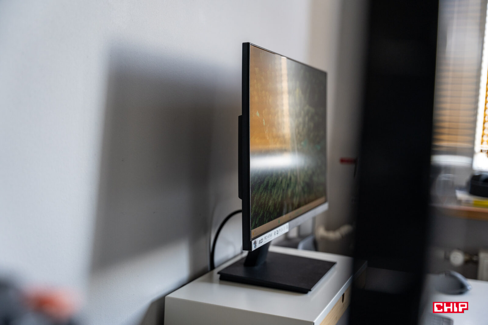 Wzornictwo jest bardzo proste i monitor prezentuje się bardzo dobrze. Ma dosyć cienkie ramki po bokach i przy górnej krawędzi, więc jeśli ustawimy obok siebie dwa, a nawet trzy takie ekrany, miejsce ich połączenia nie będzie się nam mocno rzucać w oczy.