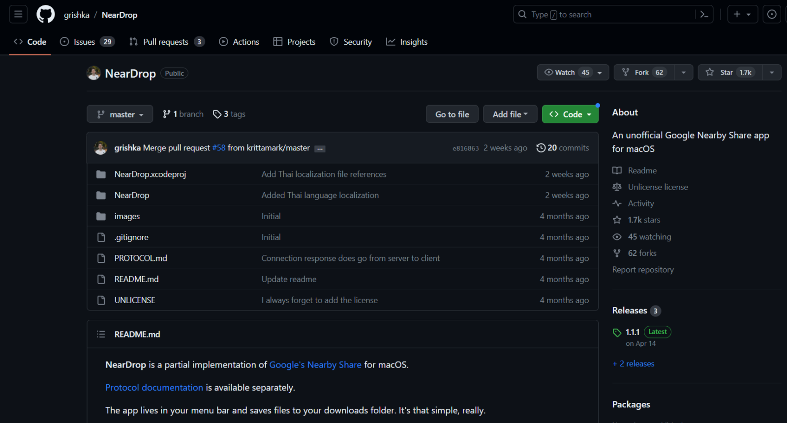 Na szczęście, za sprawą XDA Developers znalazłem na to rozwiązanie i nosi ono dość przekorną nazwę NearDrop (dosadna zlepka terminów Nearby Share i AirDrop). To tzw. third party app, czyli aplikacja, która powstała niezależnie od Google i Apple, rękami jednego developera, który podpisuje się jako Gregory K (Grishka). Dlaczego NearDrop nie jest oficjalną aplikacją dostępną w sklepie App Store? Jak otwarcie pisze na swoim profilu w serwisie GitHub, nie chce płacić Apple 99 dolarów rocznie za przywilej tworzenia aplikacji na macOS. Po części jestem w stanie ten argument zrozumieć, szczególnie z punktu widzenia developera tworzącego oprogramowanie dla Androida.