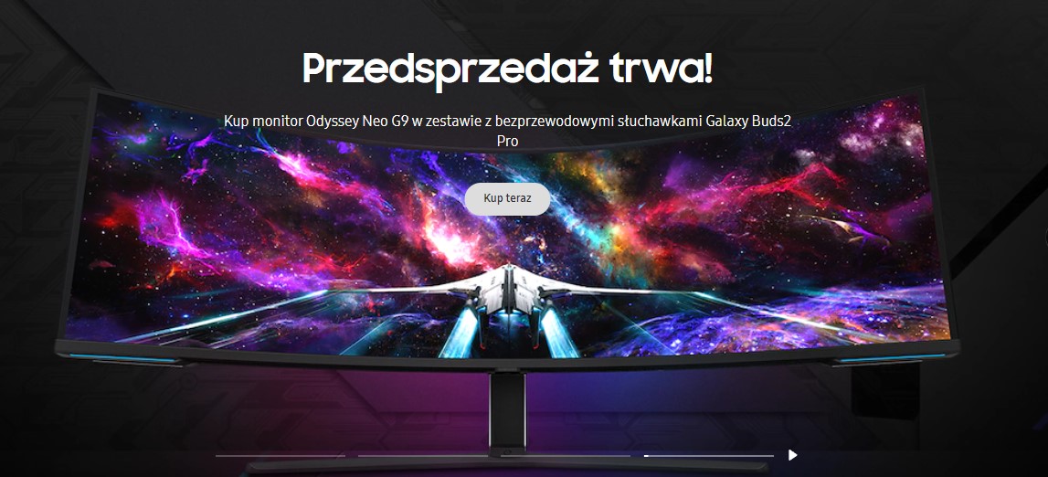 Przedsprzedaż Odyssey Neo G9 G95NC 57″ ruszyła. Monitor kupicie już za 10999 złotych, a jego dostawy powinniście spodziewać się 6 września bieżącego roku. Samsung wszystkim klientom dorzuci dodatkowo słuchawki TWS Galaxy Buds2 Pro w prezencie, więc jeśli czekaliście na ten właśnie monitor, to lepszej okazji na jego zakup się nie doczekacie.