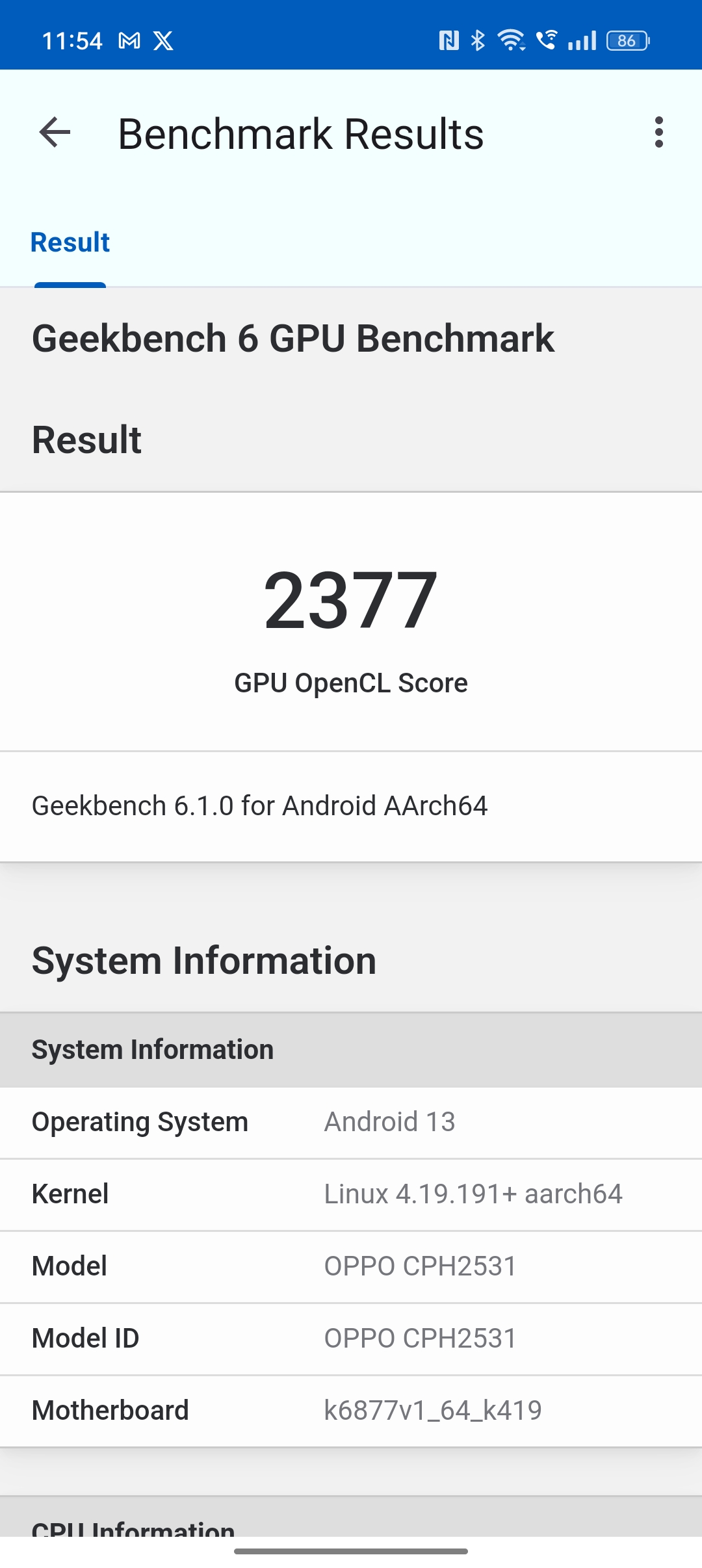 - Geekbench 6 Compute OpenCL: 2377 pkt
