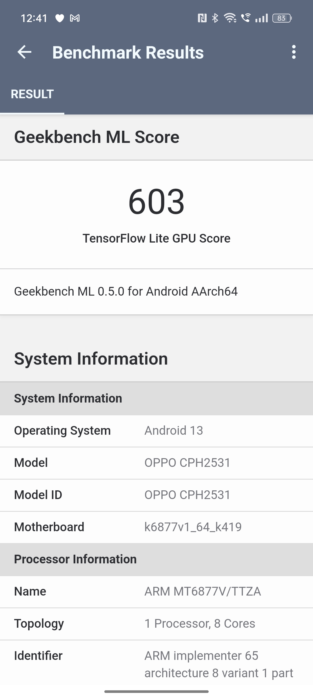 - Geekbench ML GPU: 603 pkt