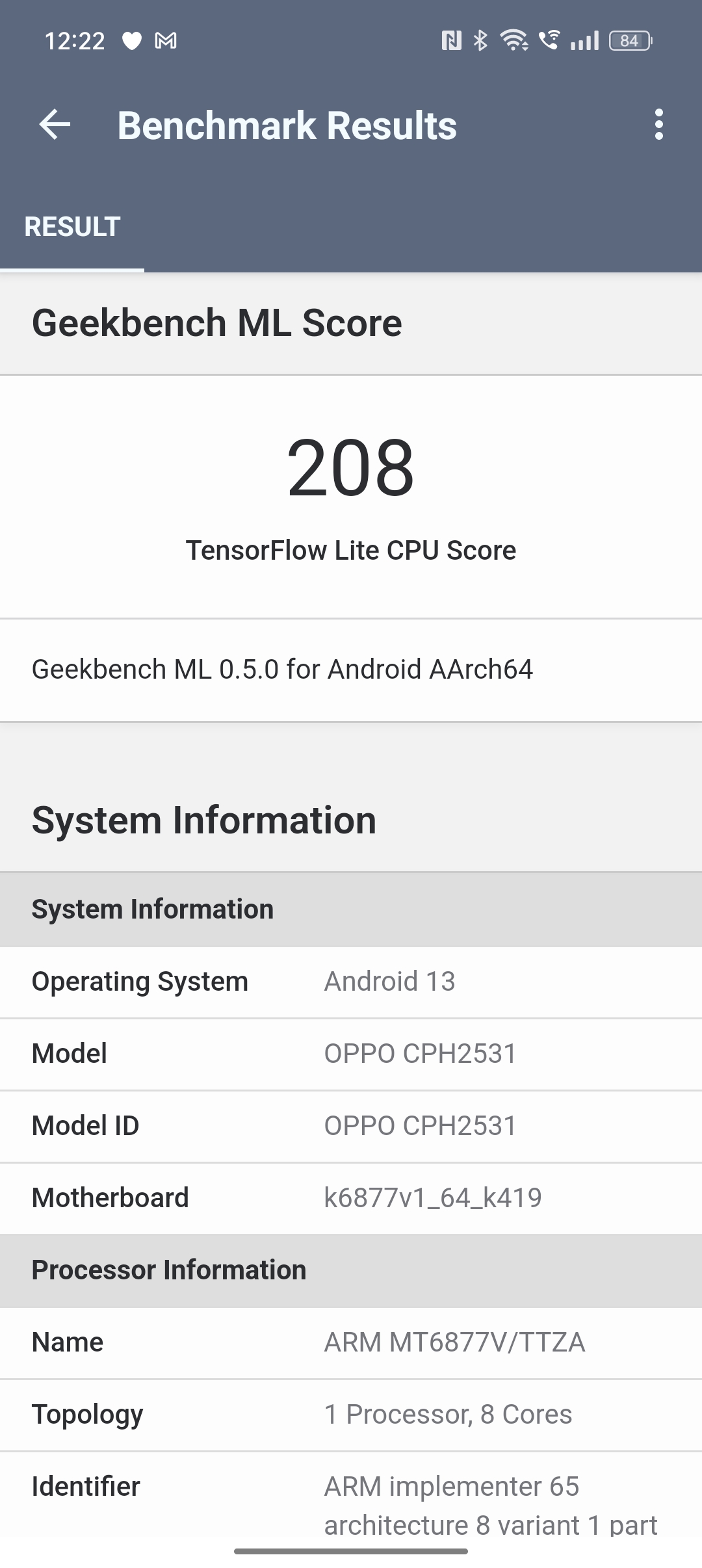 - Geekbench ML CPU: 208 pkt