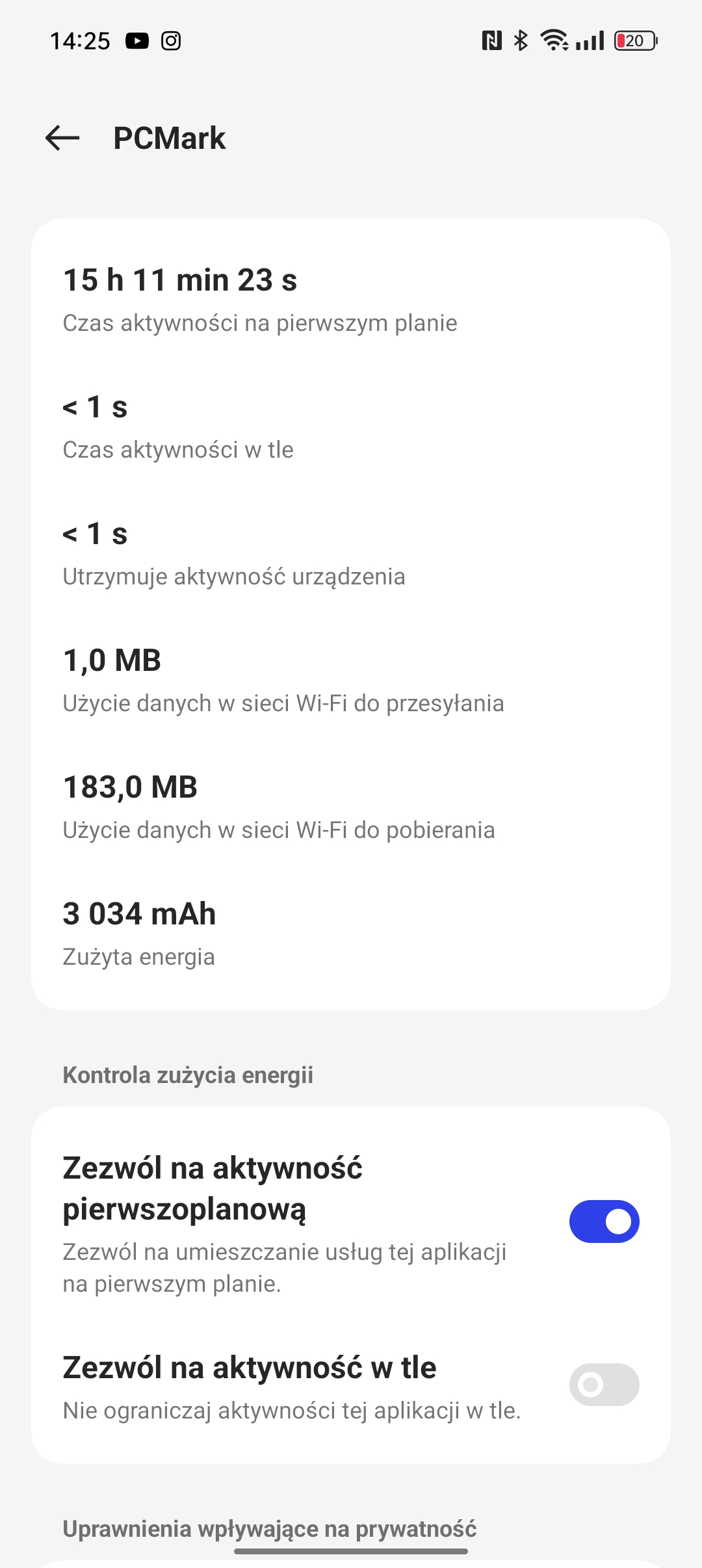 Ponieważ każdy użytkuje smartfon inaczej, do kluczowej oceny używam (gdy tylko mogę) testu PCMark Battery. W przypadku Oppo Reno10 5G test zakończył się błędem, ale że błąd wystąpił dokładnie w momencie gdy powinien zostać zakończony ze statystyk baterii można było bez problemu uzyskać czas działania testu – było to imponujące 15 godzin i 11 minut, a moje osobiste wrażenia z użytkowania smartfonu potwierdzają, że akumulator jest jego mocną stroną. Oczywiście tak skuteczne zarządzanie energią ma swoje efekty uboczne – jak już pisałem przy okazji oceny systemu, po dłuższej nieaktywności aplikacje są usypiane, a powiadomienia z nich przestają działać w czasie rzeczywistym i przychodzą hurtowo po wzięciu telefonu w rękę i wybudzeniu. Typowo, opcje pozwalające zmienić zarządzanie energią dla każdej aplikacji z osobna są dość głęboko ukryte i znajdzie je raczej świadomy użytkownik.