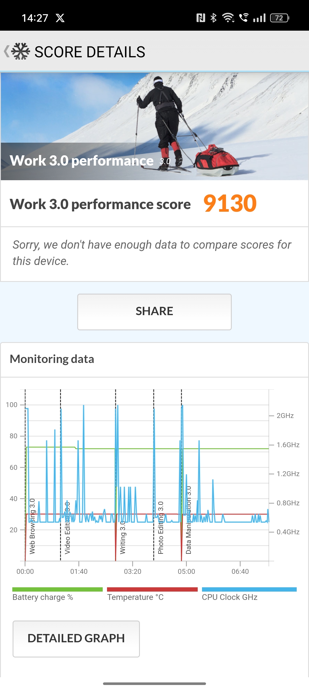 - PCMark Work 3.0: 9130 pkt