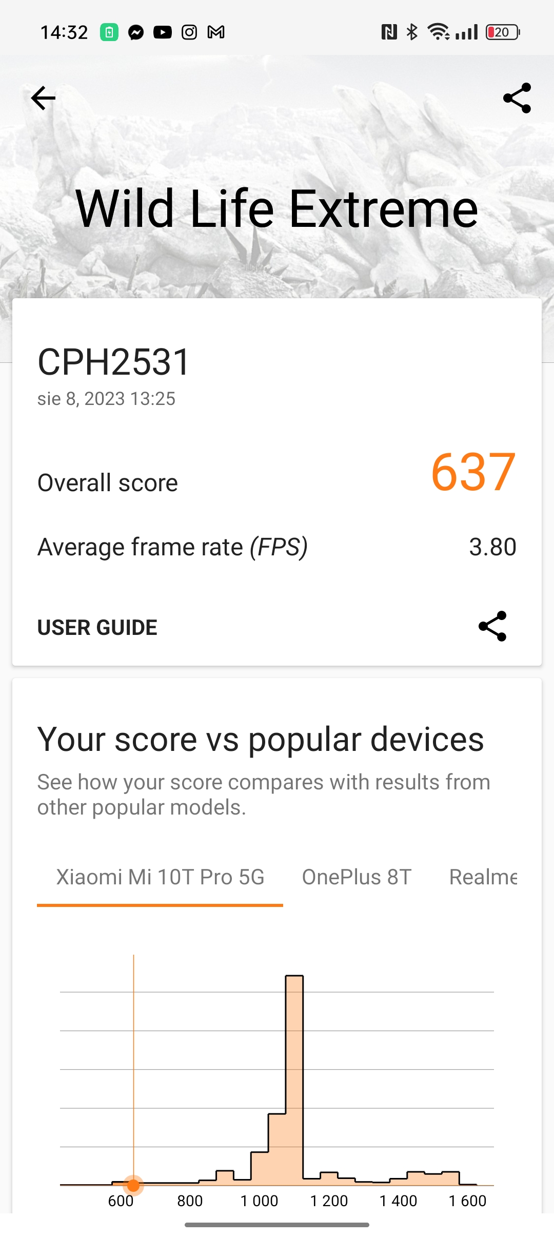Oppo Reno10 5G to dość niemłody już SoC ze średniej półki połączony z 8 GB RAM i pamięcią flash UFS 2.2. Wydajność jest przeciętna, ale wystarczająca do codziennej pracy – ale już niekoniecznie do zabawy w wymagające gry.