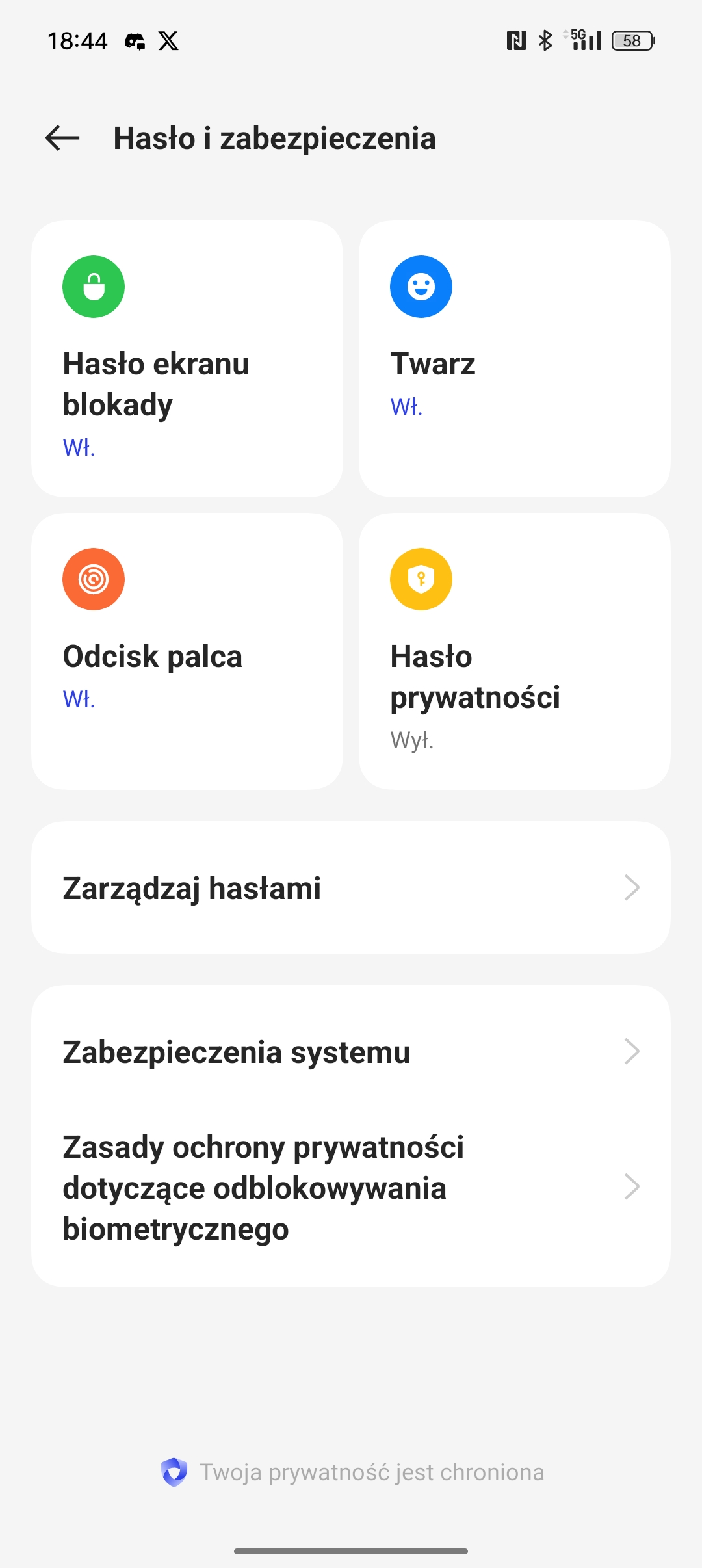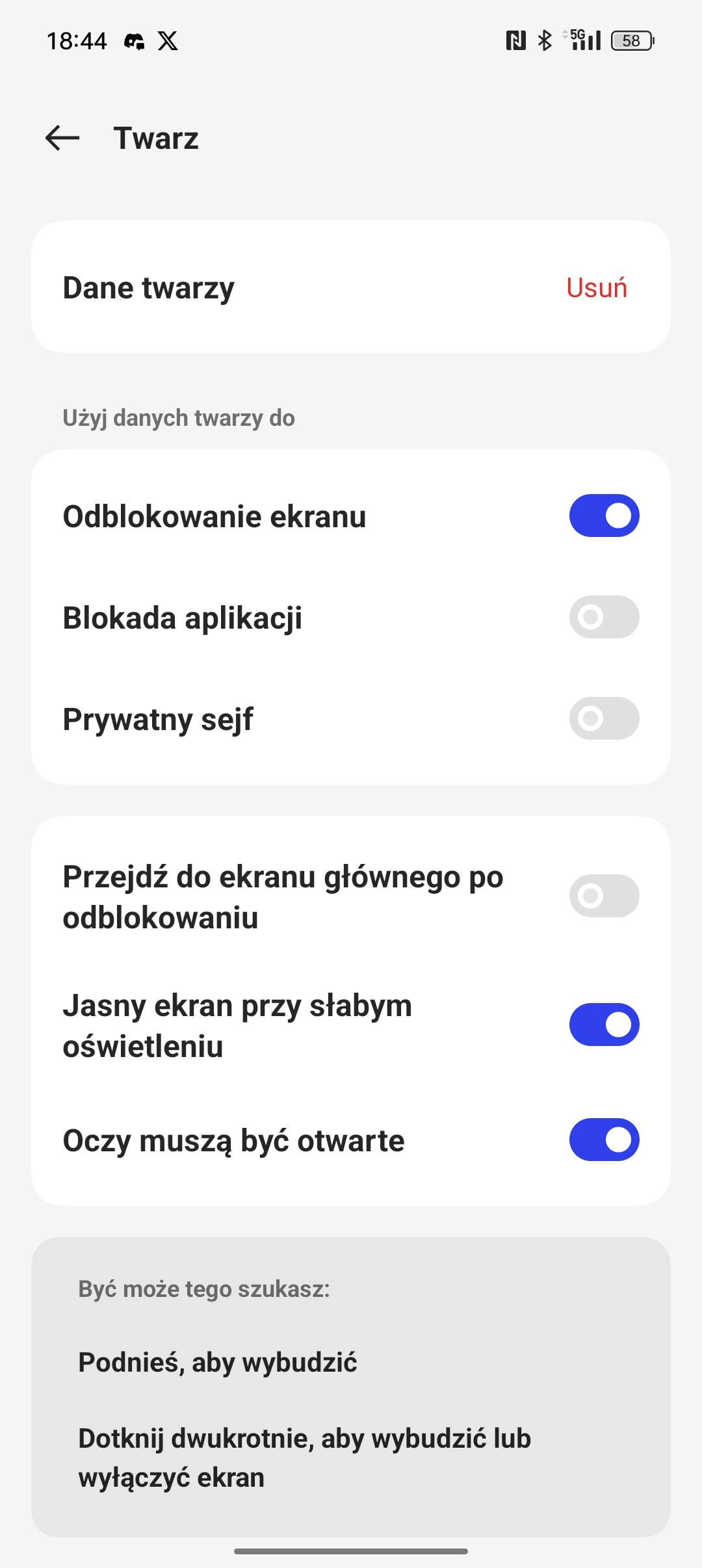 Oppo potrafi także rozpoznawać użytkownika z twarzy – skanem 2D robionym za pomocą przedniego aparatu, więc mało bezpiecznym, aczkolwiek nie udało mi się oszukać go zdjęciem wyświetlonym na innym urządzeniu. Skan jest szybki, a telefon potrafi doświetlić twarz za pomocą ekranu, można zatem z tej metody odblokowywania korzystać także w nocy.