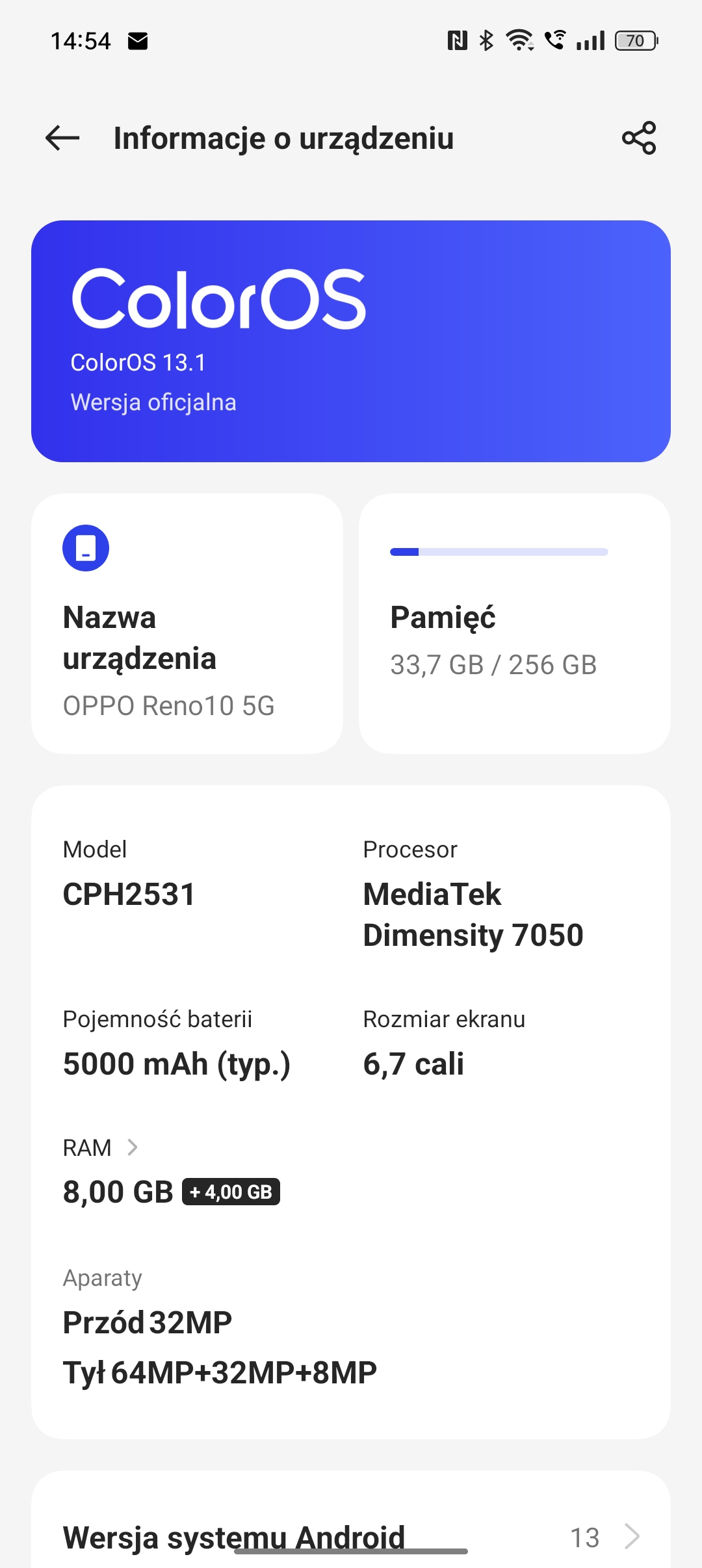 | System operacyjny | Android 13, ColorOS 13.1 |