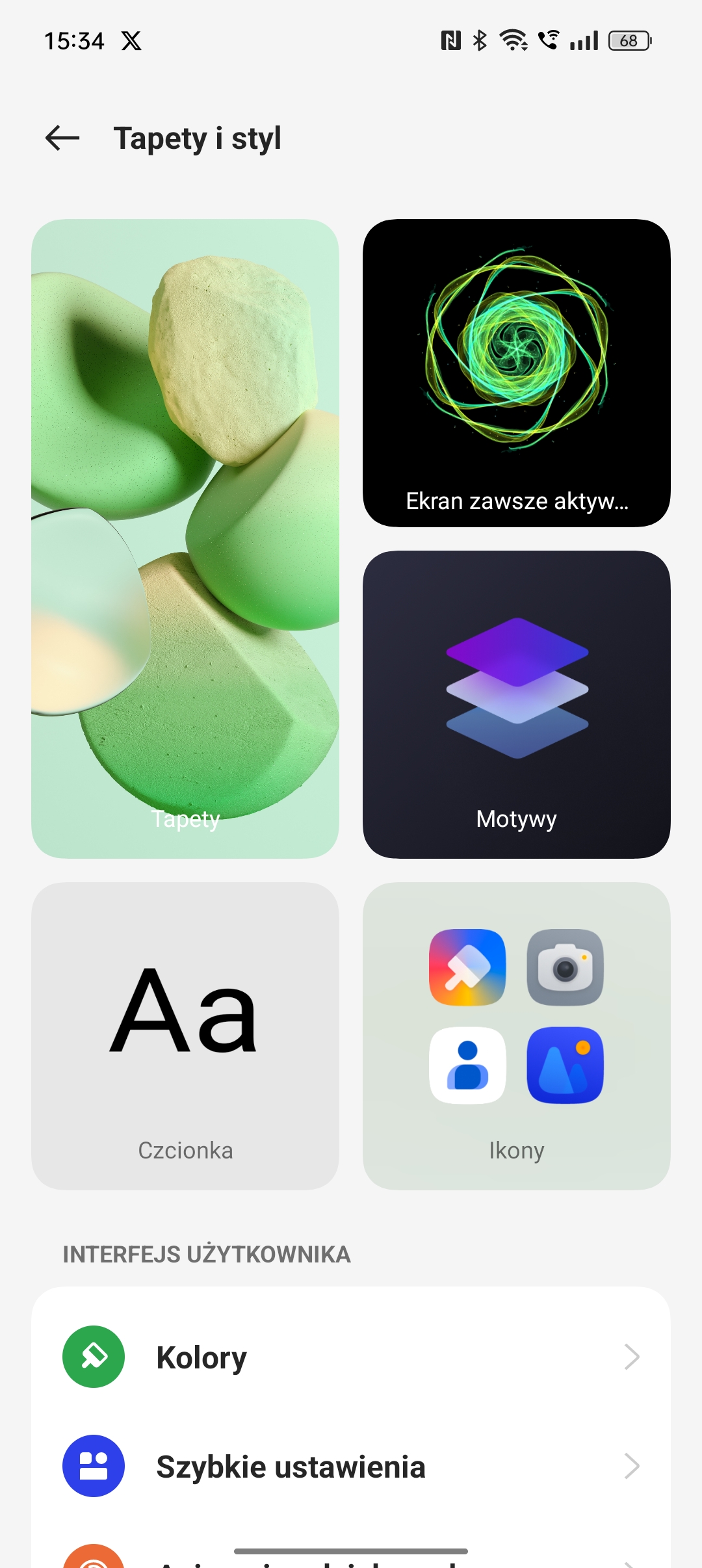 ColorOS 13.1 poza tym prezentuje się raczej przyjemnie i ma spore możliwości dostosowania wyglądu do upodobań użytkownika. Można skorzystać z gotowych motywów albo zmieniać każdy element UI osobno – skorzystałem z możliwości zmiany kształtu ikon (osobno dla programów i dla panelu szybkiego dostępu), wybierając zbliżony do OneUI (system nie pozwala tu aplikacjom na dowolność) i zmieniłem animację przy skanowaniu odcisku palca.