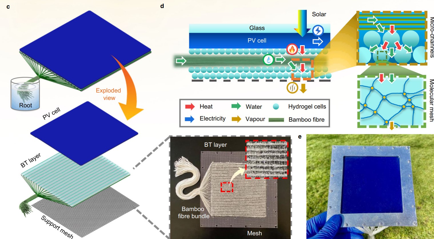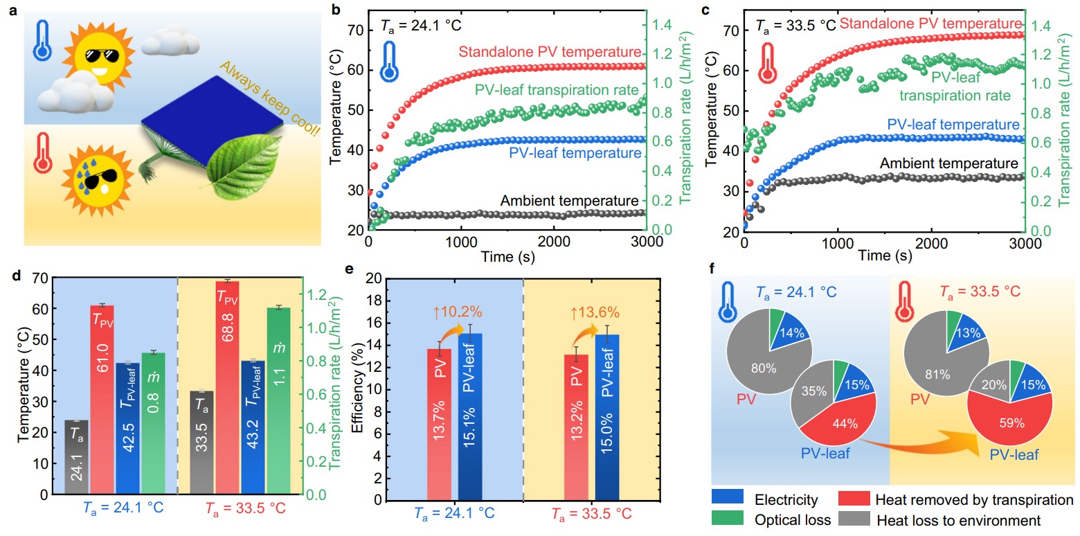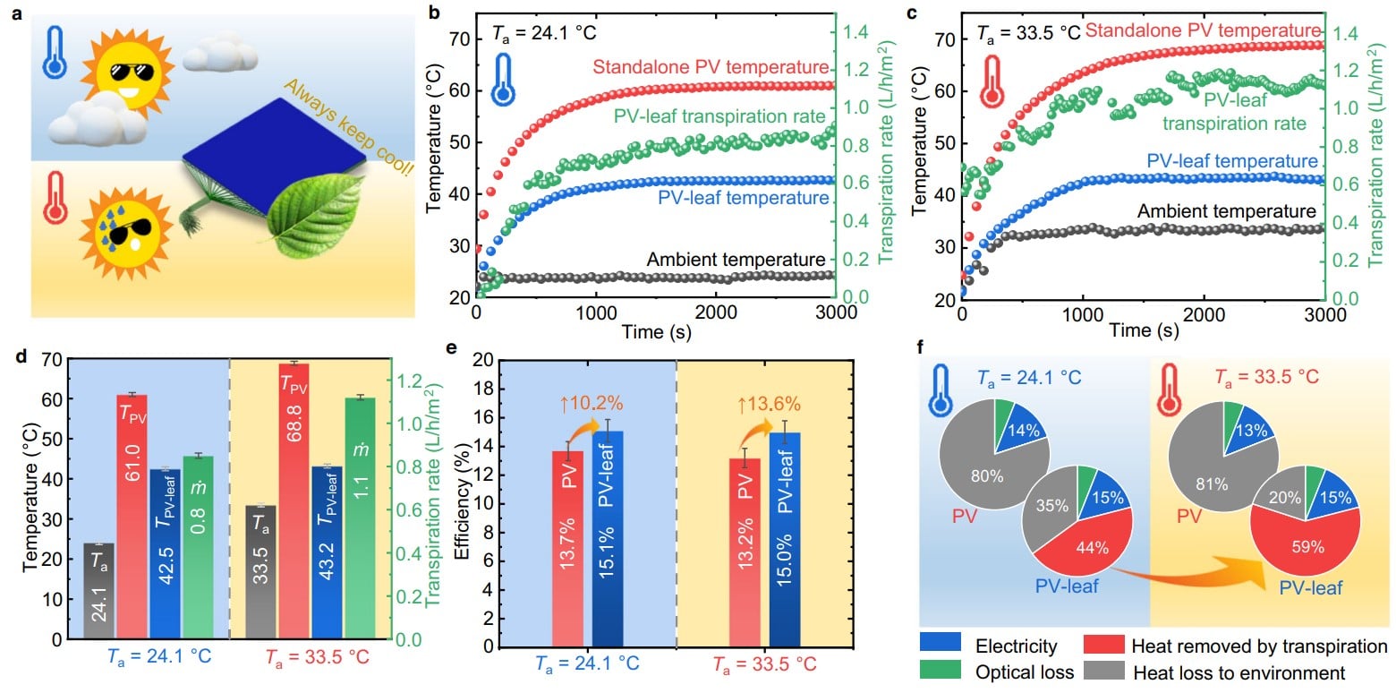 Innowacją w nowoczesnym fotowoltaicznym liściu jest fakt, że mimo wykorzystywania ponoć niedrogich materiałów, jest znacznie lepszy od tradycyjnych paneli mimo znacznie szerszego zakresu możliwości. Naśladuje bowiem proces transpiracji, czyli sposób, w jaki rośliny przenoszą wodę z korzeni do liści i odparowują ją, a robi to za sprawą przyspieszających ten proces hydrożeli oraz naturalnych włókien, które działają podobnie, jak żyłki liści. Składniki te pomagają usuwać ciepło z ogniw słonecznych i tym samym zwiększają ich wydajność o całe 10 procent względem konwencjonalnych paneli, emitujących do nawet do 70 procent energii słonecznej bezpośrednio do środowiska. Wysoka temperatura paneli obniża bowiem ich efektywność.