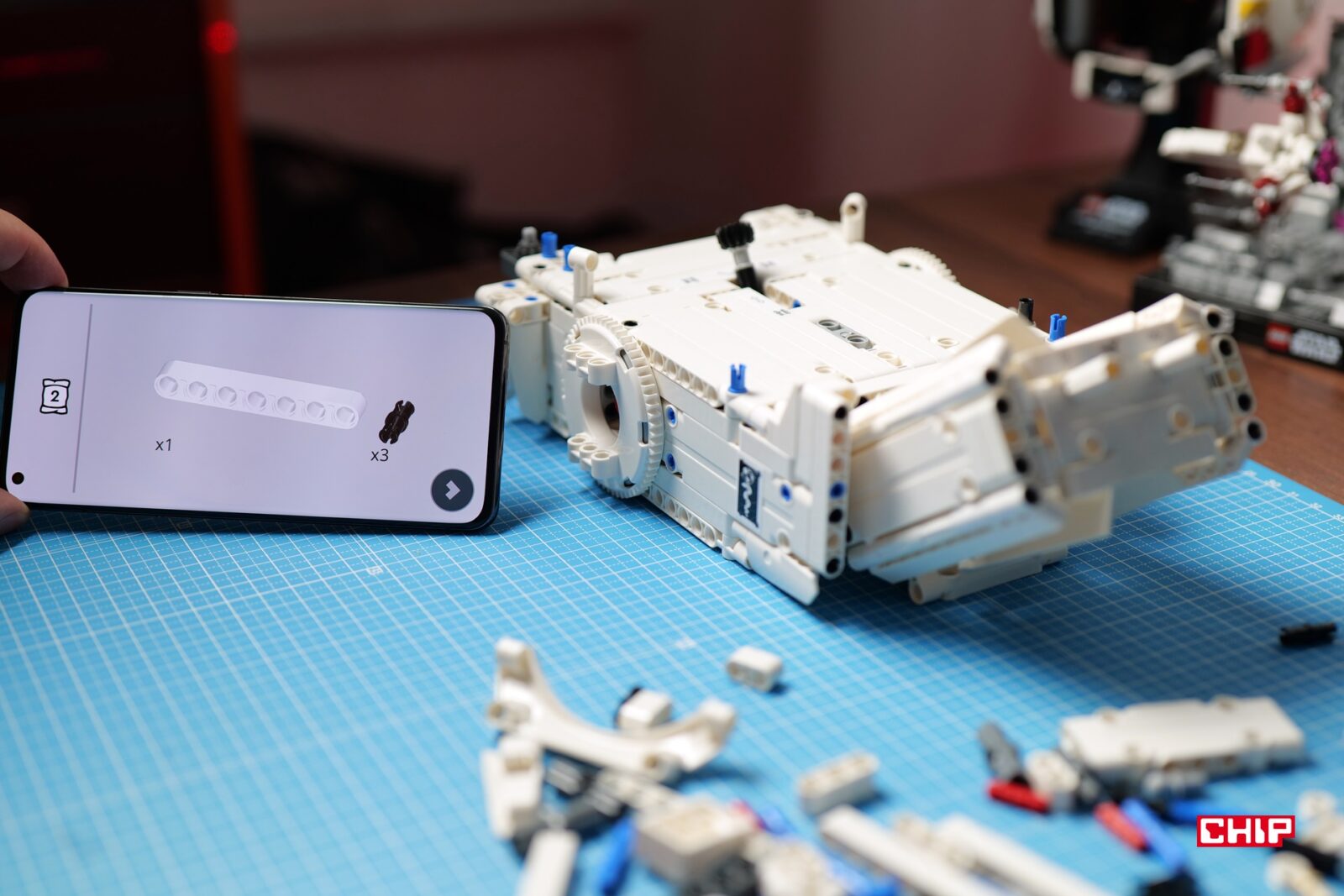 Zestaw złożymy z pomocą klasycznej instrukcji albo LEGO Builder – aplikacji mobilnej z wizualizacjami 3D dla każdego etapu procesu. Znacznie pomogła mi ona w momentach, gdy wyobraźnia przestrzenna zawodziła. Instrukcja ma często większe obrazki niż smartfony, za to nie mamy możliwości zmiany perspektywy. Nie rozumiem tylko, dlaczego aplikacja potrzebuje stałej łączności z siecią. Po godzinie składania smartfon był już mocno rozgrzany.