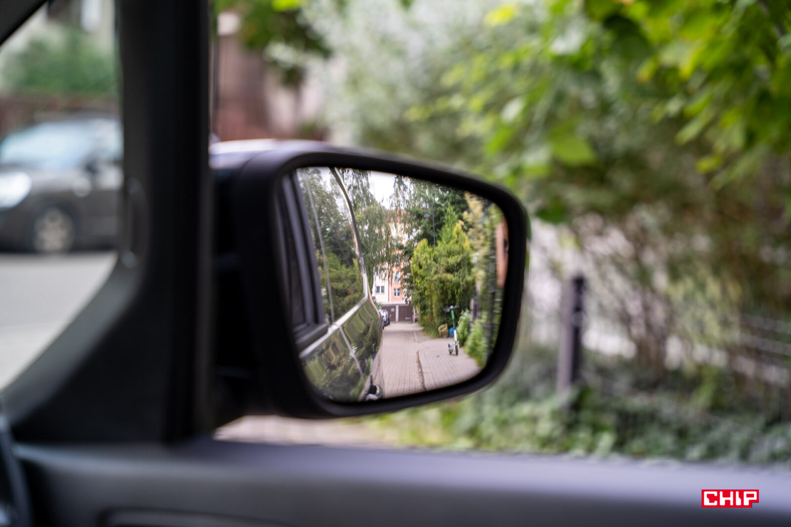 Jak widzicie, poza lusterkiem, które w tym konkretnym przypadku jest bardzo duże, niewiele widać. Oczywiście są różne nakładki na lusterka, lusterka podwójne poprawiające widoczność, ale mimo wszystko, może zdarzyć się sytuacja, w której kierowca zwyczajnie nie widzi zbliżającego się obiektu, szczególnie jeśli będzie to szybko poruszający się rower czy hulajnoga.