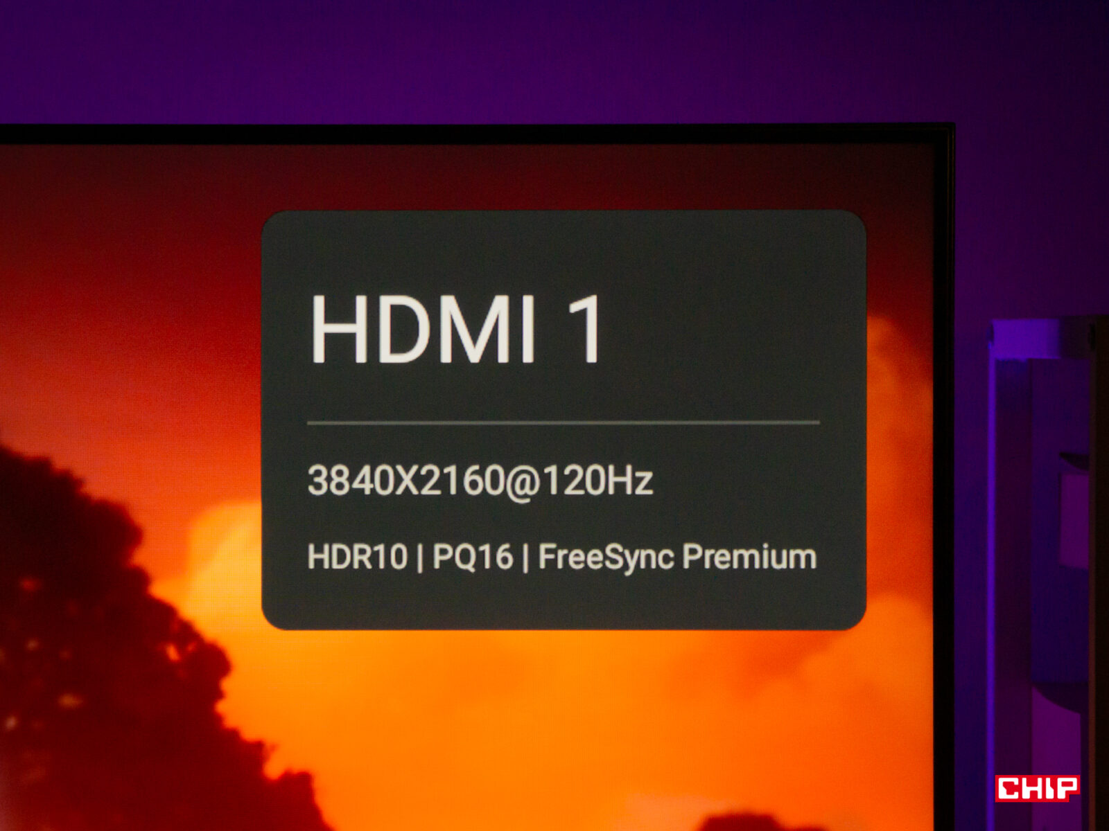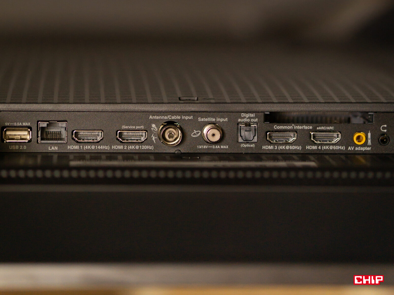 - porty i łączność: 1 x HDMI 2.1 (144 Hz, FreeSync Premium Pro), 1x HDMI 2.0 (120 Hz), 2 x HDMI 1.4b, 1 x USB 2.0, 1 x optyczne wyjście audio, gniazdo CI, port Ethernet, wejście RF, Wi-Fi 5, Bluetooth 5.0;