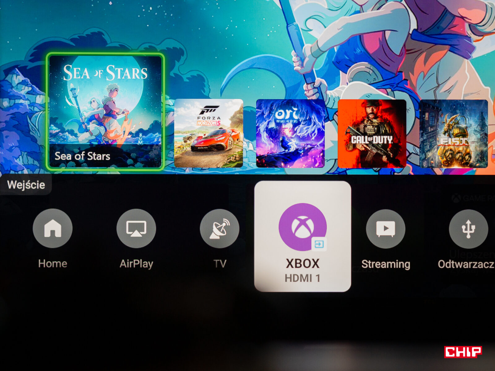 Potencjał gamingowy TCL C745 miałem okazję sprawdzić w zestawie z Xboxem Series S i jestem tym duetem zachwycony. Wykorzystując gniazdo HDMI 2.1 bez problemu wyciągnie się do 144 Hz (jeśli macie słabszego Xboxa Series S, to niestety tylko 120 Hz). Drugie gniazdo HDMI 2.0 oferuje odświeżanie do 120 Hz i na szczęście wszystkie porty HDMI są odpowiednio oznaczone, więc łatwiej podpiąć do nich właściwe urządzenia. To dość rzadkie, że telewizor z tej kategorii cenowej oferuje aż tak wysokie odświeżanie.