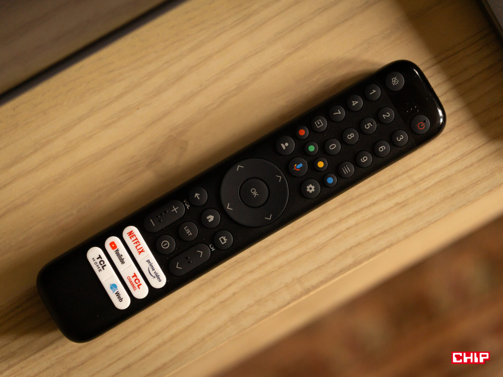 Znajdujący się w zestawie pilot zdalnego sterowania ma osobny przycisk dla Asystenta Google. Przytrzymując go można wydać polecenie głosowe (np. zapytać o pogodę, poprosić o przełączenie na konkretny kanał lub uruchomienie aplikacji). Na szczęście pilot nie jest przesadnie przeładowany funkcjami. Na samym dole mamy kilka na sztywno przypisanych przycisków do usług (YouTube, Netflix, Prime Video) oraz trzech kolejnych od TCL (druga trójka jest tu moim zdaniem nieco na siłę).