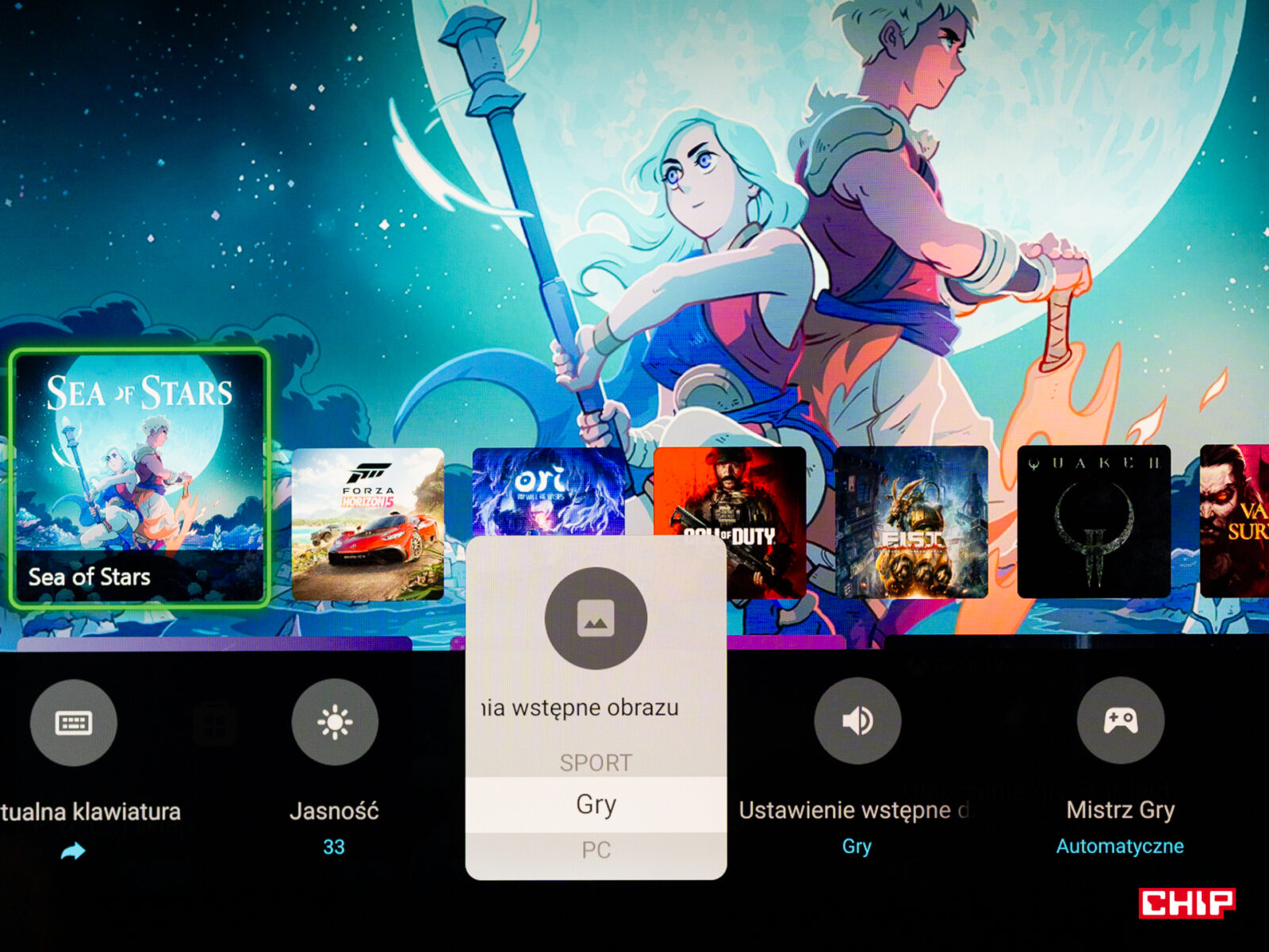 Dodatkowy uśmiech w stronę pecetowców stanowi funkcja TCL DLG Game Accelerator, która przy rozdzielczości 1080p potrafi wycisnąć nawet 240 Hz (trochę szkoda, że nie 1440p). W dopieszczeniu rozgrywki pomaga też tryb niskiej latencji (ALLM), a kontrolę nad wszystkim sprawuje nakładka Game Master 2.0, którą aktywujemy po włączeniu konsoli dłuższym naciśnięciem przycisku na pilocie odpowiedzialnego za parametry obrazu.