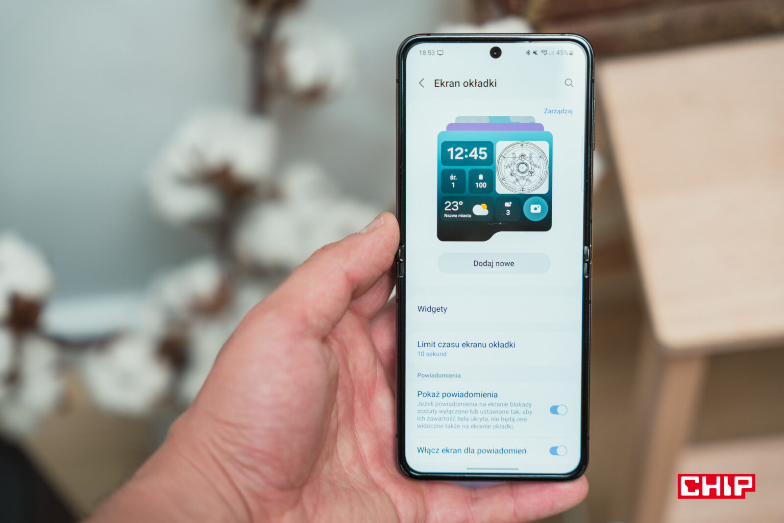 Bardzo mi się też podoba to, że mogę ustawić always-on-display (czego nie można zrobić w Motoroli RAZR 40 Ultra) i może on pokazywać różne informacje zależnie od tego, jaki ekran okładki ustawimy. A z kolei do wyboru mamy mnóstwo ekranów okładki, które można do woli konfigurować, zmieniając ich kolorystykę, typ i wyświetlane elementy. Jeśli dla kogoś personalizacja telefonu stanowi priorytet, to trudno o lepszy wybór, niż Samsung Galaxy Z Flip 5 (przynajmniej w zakresie personalizacji dostępnej z poziomu systemu, bez dodatkowych aplikacji).