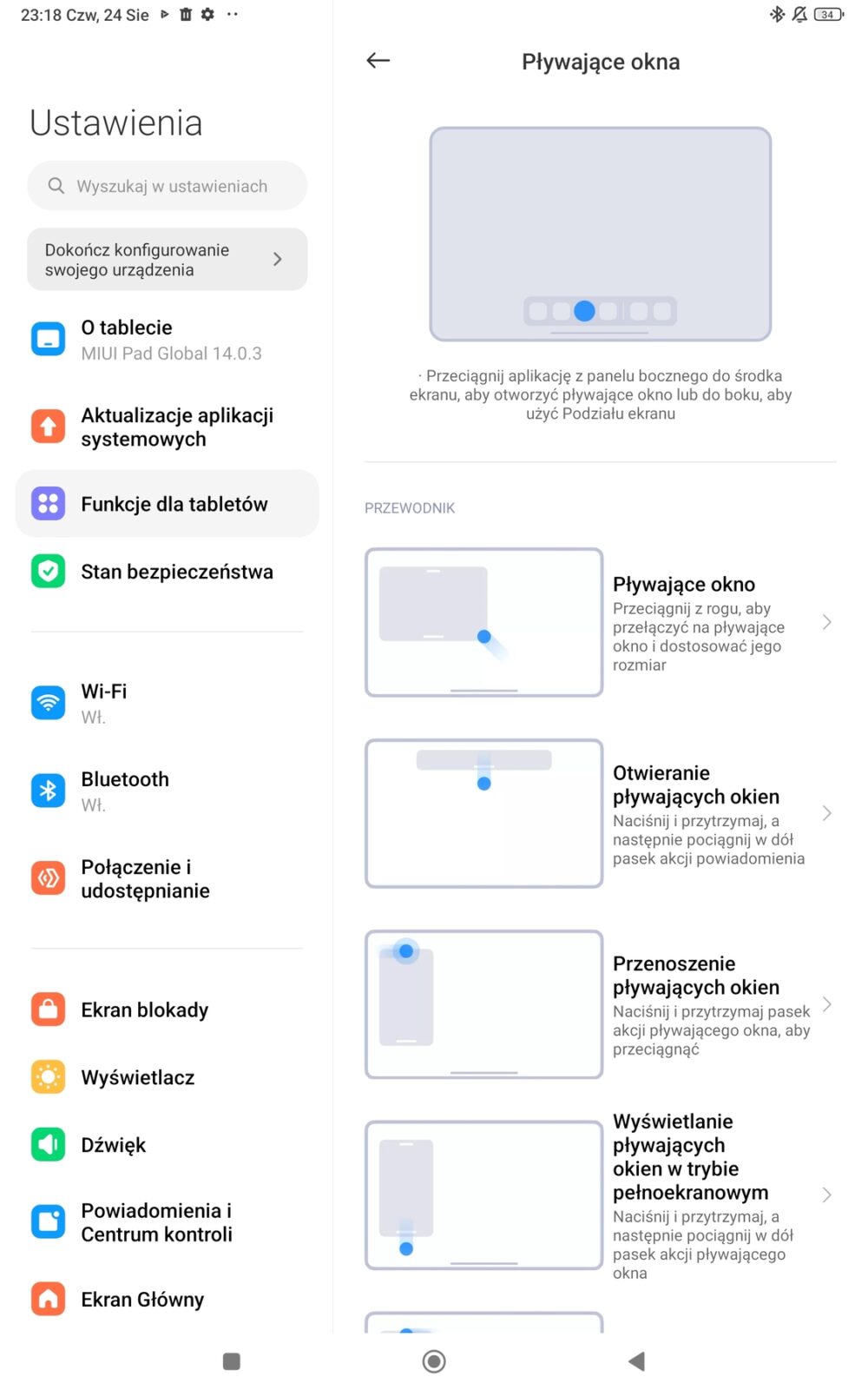Android 14 z MIUI Pad Global 14