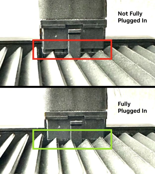 Gdy wybuchła afera z płonącymi kartami graficznymi, Nvidia wydała w tej sprawie oświadczenie. Wynikało z niego, że defekt wywoływało niedokładne podłączenie 12VHPWR w gnieździe. Zbyt słaby kontakt pinów powodował bardzo mocne nagrzewanie się elementów – ponoć nawet do 250°C. Na stronie producenta pokazano, jak powinno wyglądać właściwe podpięcie.
