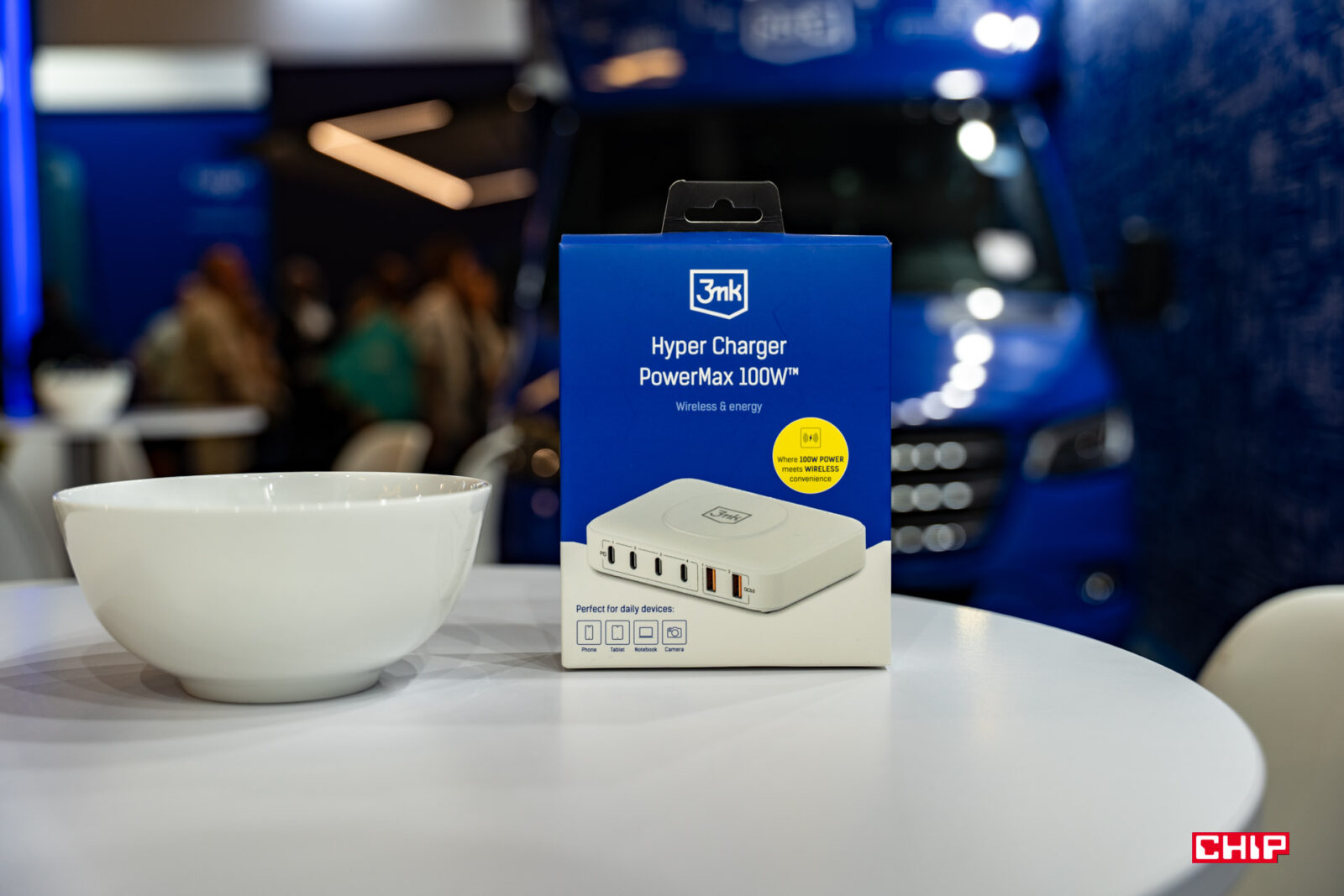 3mk Hyper Charge PowerMAX 100 W to z kolei potężna ładowarka z aż sześcioma portami i ładowarką indukcyjną w górnej części obudowy. Mamy tu cztery porty USB-C i dwa USB-A. W przypadku dwóch portów USB-C mamy do dyspozycji moc aż 100 W, z kolei ładowanie bezprzewodowe odbywa się z więcej niż przyzwoitą mocą 15 W. Z wszystkich możliwości ładowania możemy korzystać jednocześnie, a to oznacza, że na raz możemy naładować aż siedem różnych urządzeń, w tym jedno bezprzewodowo. A wszystko to zamknięte w kompaktowej, jak na możliwości, obudowie.