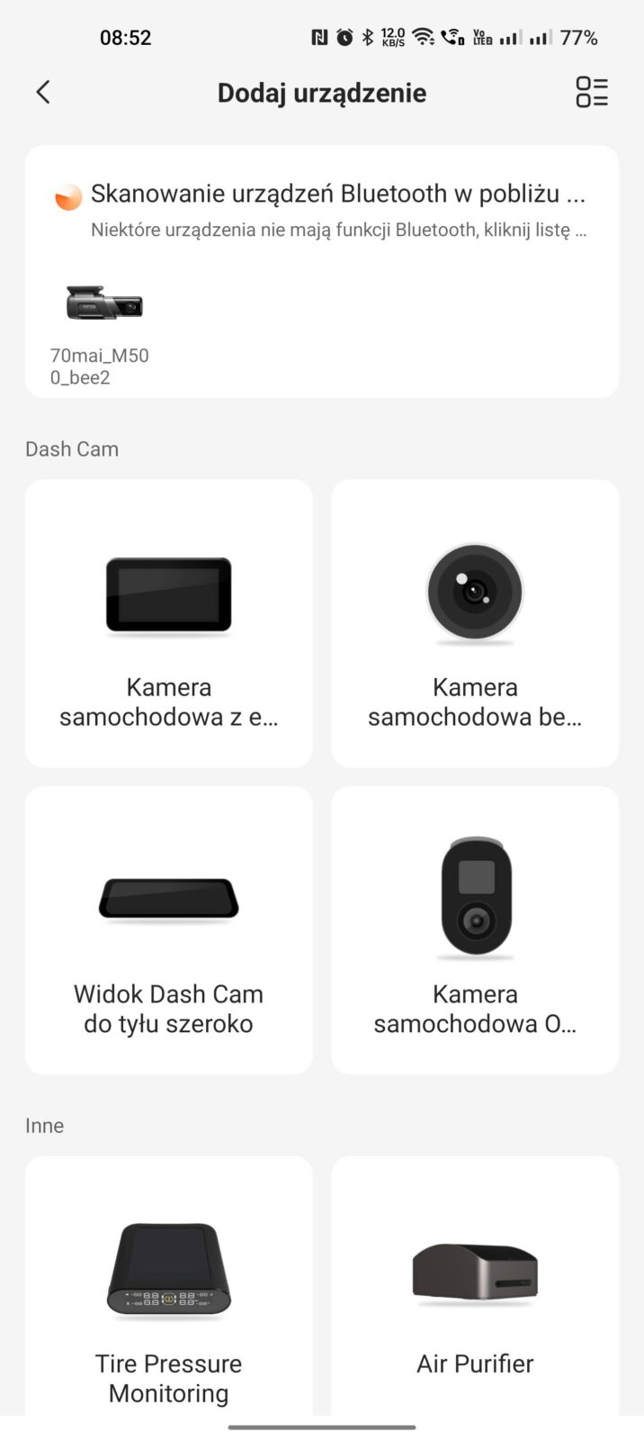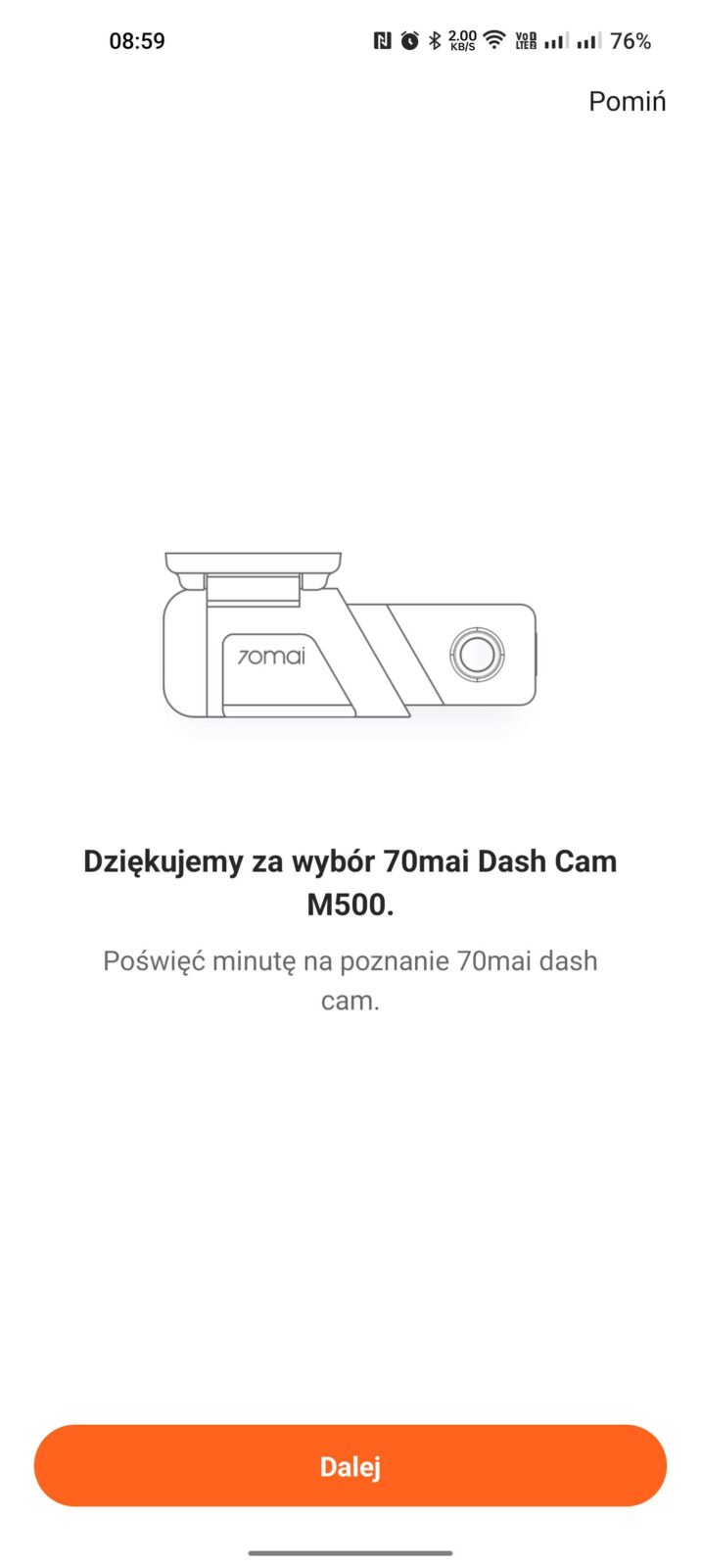 Z samą instrukcją warto się zapoznać, bo dzięki niej poznamy nie tylko wszystkie elementy składowe M500, ale też dowiemy się, jak dokładnie powinniśmy przeprowadzić montaż w samochodzie, jakie funkcje posiada pojedynczy przycisk, co oznaczają różne kolory jego podświetlenia i co najważniejsze, dowiemy się, jak uzyskać dostęp do wideorejestratora z poziomu aplikacji. Jest to jedyna możliwość kontrolowania tego sprzętu, ale na szczęście nie musicie wczytywać się w instrukcję, aby przeprowadzić proces parowania, bo aplikacja 70mai poprowadzi was w tym za rękę, a na dodatek przypomni o odpowiednim ustawieniu kąta widzenia.