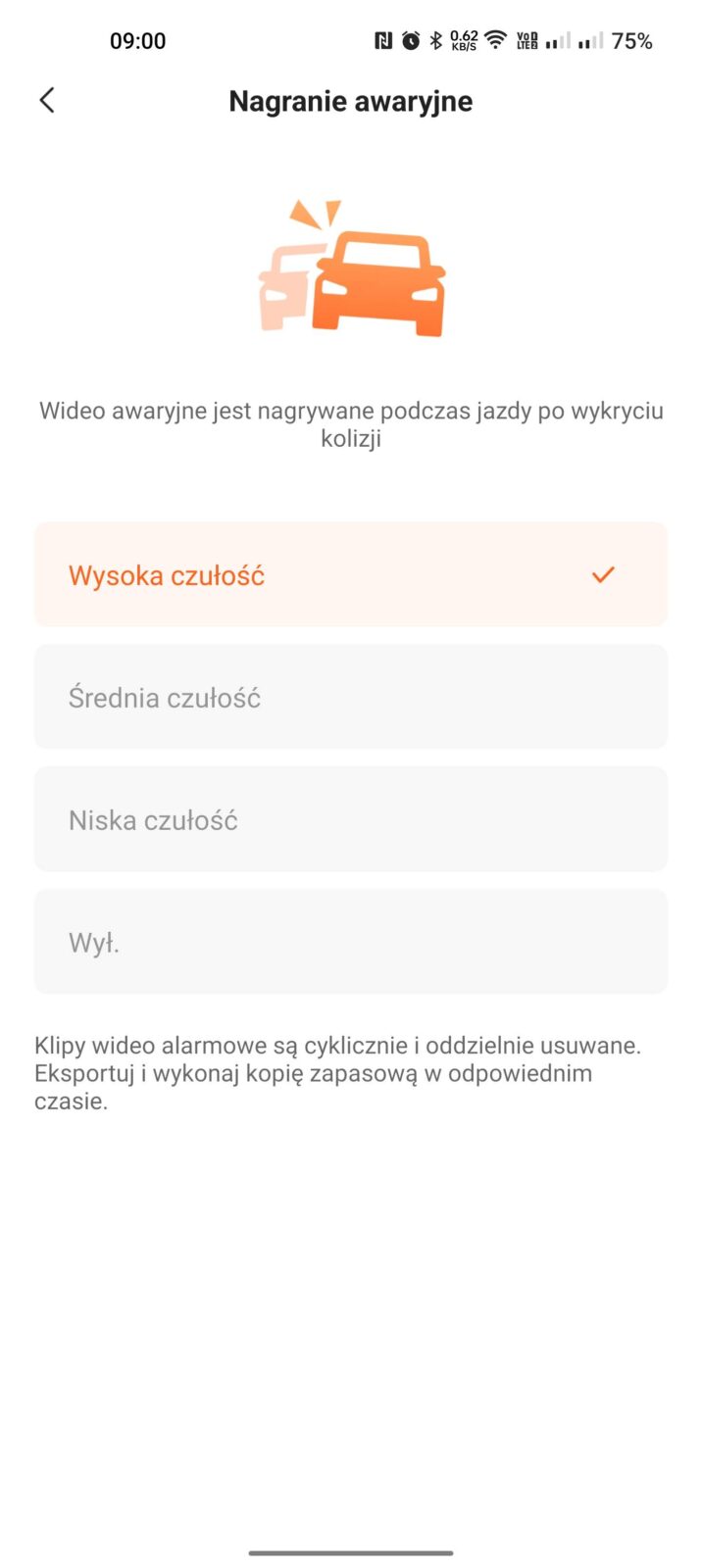 Jak już wspomniałem, cały proces konfiguracji, przeglądania nagrań ich zapisywania oraz uzyskiwania podglądu tego, co M500 “widzi”, znajduje się w aplikacji na smartfony. Czy to dobrze? Osobiście uważam, że zdecydowanie tak, bo wideorejestrator nie jest rodzajem sprzętu, który zyskuje wiele na własnym wyświetlaczu i zestawie przycisków. Jest to jednak raczej kwestia przyzwyczajeń i wymagań, więc decyzja co do tego, czy tego typu cecha przekreśla z marszu wideorejestrator, zależy już wyłącznie od was.