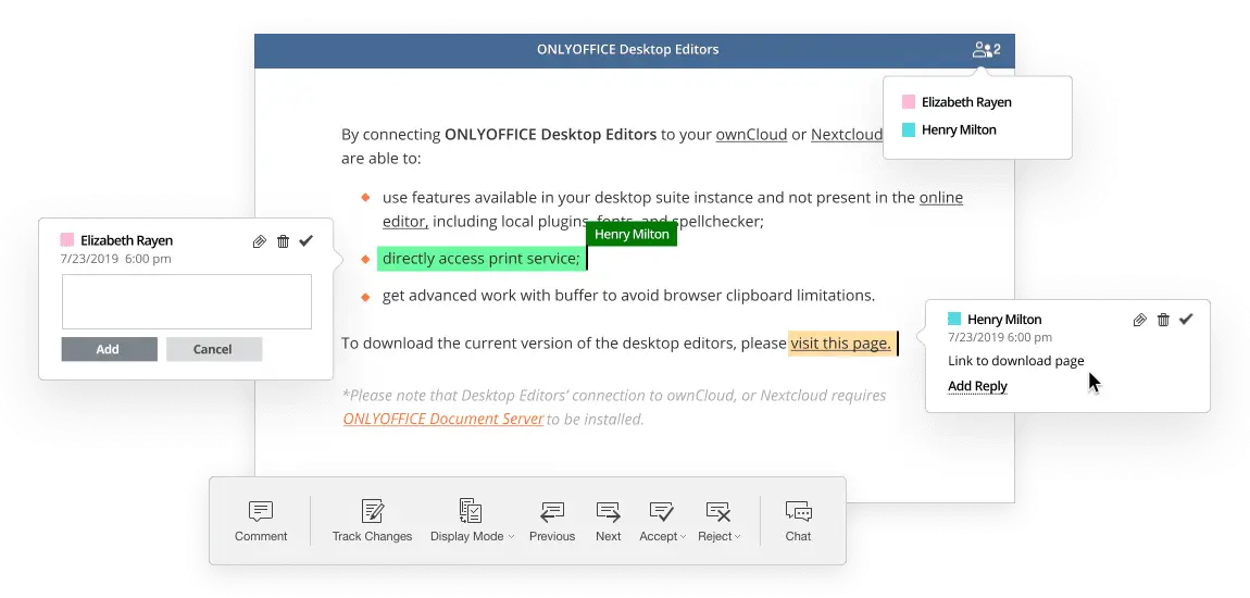 - OnlyOffice – trzy aplikacje biurowe przeznaczone do współpracy z dokumentami, arkuszami kalkulacyjnymi oraz prezentacjami. Dostępny zarówno w wersjach dla osób prywatnych, jak i firm oraz organizacji.