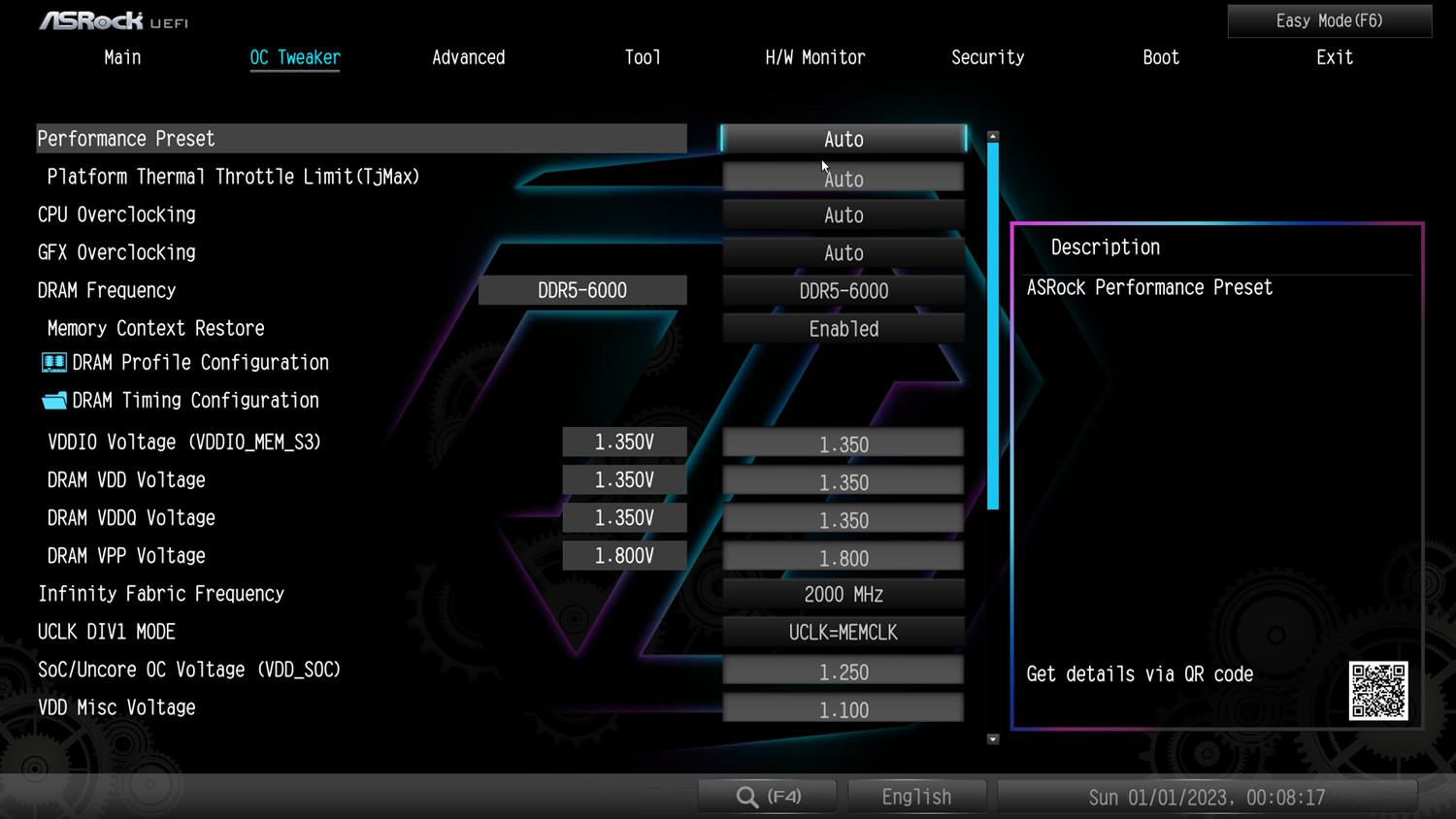Wreszcie mamy tryb Easy – ASRock zapominał o nim w przypadku płyt pod procesory AMD. Możemy tu łatwo włączyć EXPO/XMP, co powinno pomóc początkującym użytkownikom. Pozostałe ustawienia są w miarę dobrze poukładane i powinniście szybko znaleźć interesującą Was opcję. Nie ma problemów z podkręceniem procesora, zmiany krzywej obrotów wentylatora czy zmiany nawet podświetlenia z poziomu BIOSu. Jest więc dobrze.