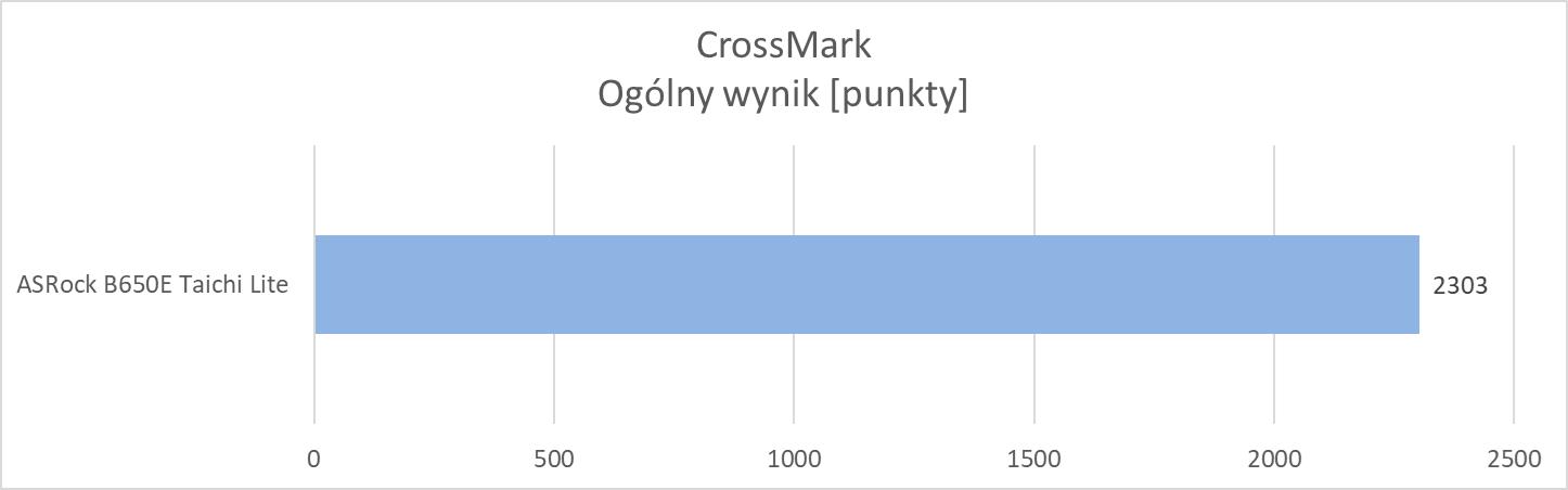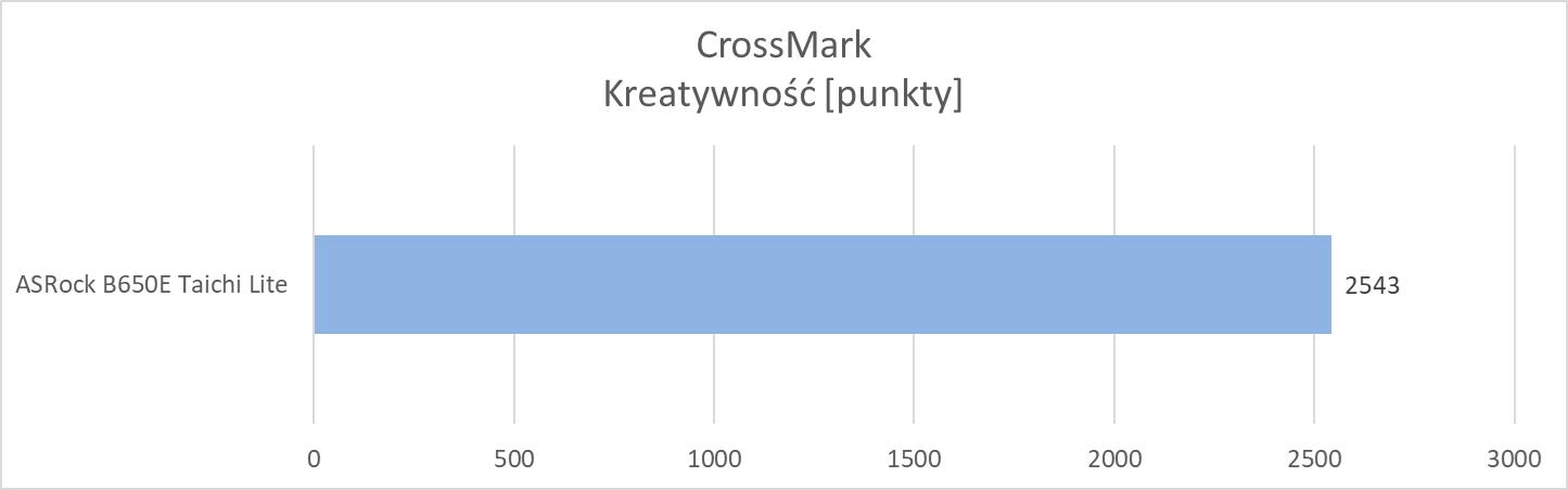 CrossMark to benchmark mierzący wydajność całego sprzętu. Odpowiednie testy można wykonać również na smartfonach, dzięki czemu można między sobą porównać wyniki różnych platform. Poniżej znajdziecie wynik ogólny oraz osobne: wydajność, kreatywność i reakcję.