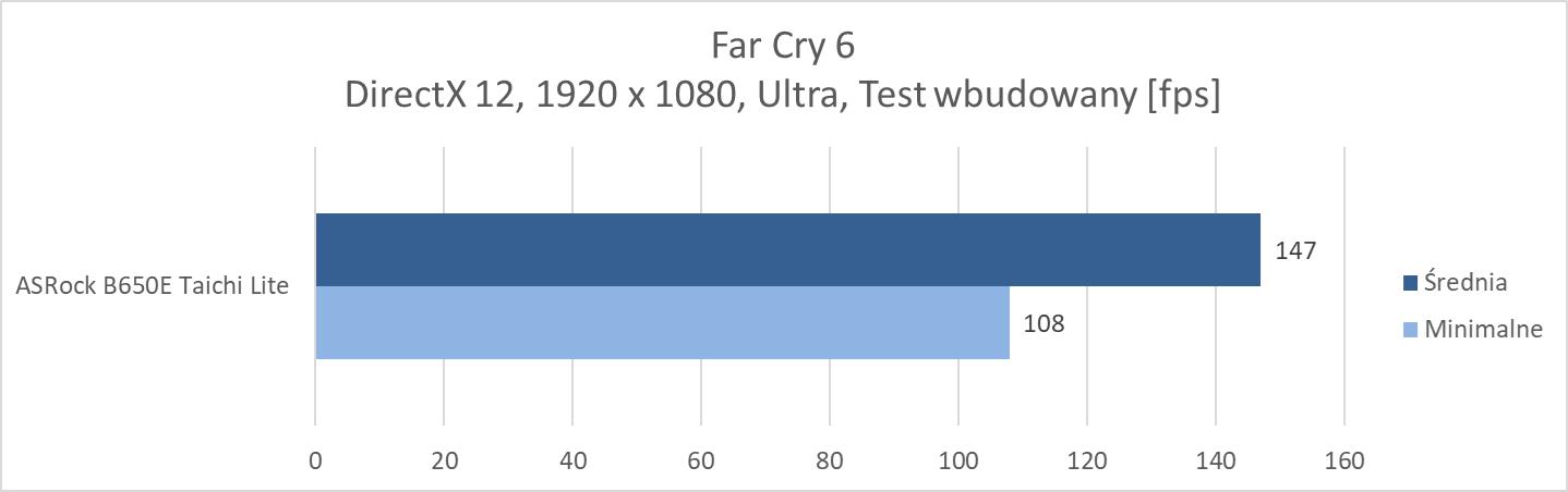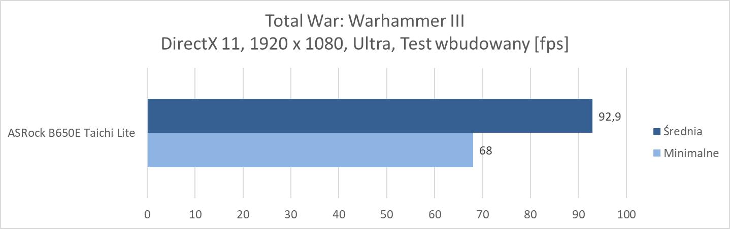 Na koniec przeprowadziłem testy w trzech grach: Total War: Warhammer III, Far Cry 6 oraz Metro Exodus Enhanced Edition. Testy wykonałem w rozdzielczości 1920 x 1080 px przy najwyższych ustawieniach. Wyłączyłem tylko ray tracing oraz DLSS/FSR, jeśli dana gra miała takie opcje. Testy przeprowadziłem przy wykorzystaniu wbudowanych w gry benchmarków. W przypadku Total War był to benchmark Mirrors of Madness.