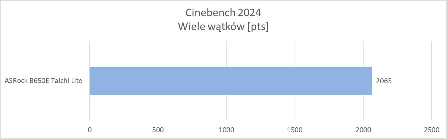 Cinebench to popularny benchmark bazujący na Maxon Cinema 4D. Pozwala on na dobrą ocenę wydajności procesorów i często pojawia się w przeciekach. W testach wykorzystałem wersję 2024 oraz testy jedno i wielowątkowe.