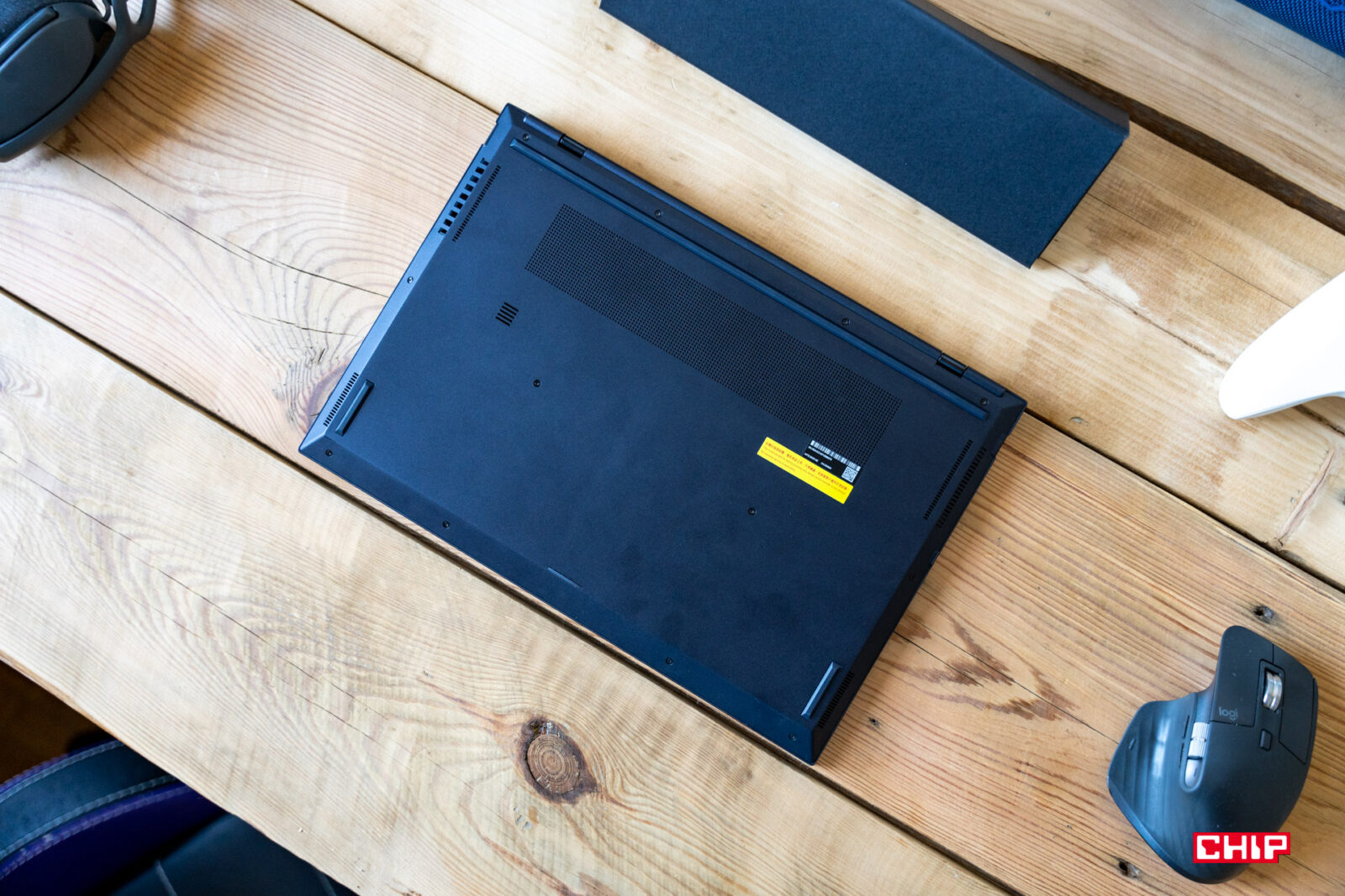 Czas pracy wariantu OLED nieco spadł w stosunku do poprzedników, głównie właśnie ze względu na ekran. Przy jasności ustawionej na 80% udało im się osiągnąć niecałe 6 godzin pracy typowo biurowej na pojedynczym ładowaniu i nieco ponad 4 godziny przy maksymalnej jakości. Przygaszenie ekranu do 50% wydłuża ten czas do ponad 7 godzin. Akumulator ładujemy za pomocą ładowarki o mocy 65W, więc można do tego użyć nawet ładowarki typowo smartfonowej.
