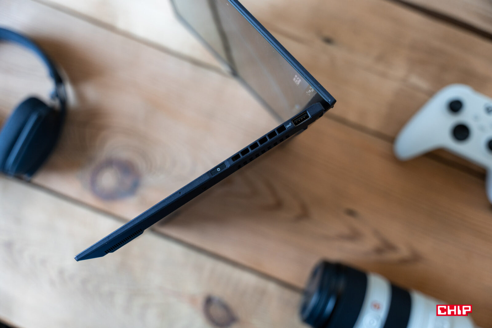 Na boku prawym trafimy na port USB-A oraz włącznik z wbudowanym czytnikiem linii papilarnych. Można na bogato w cienkiej obudowie? Można.