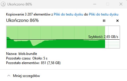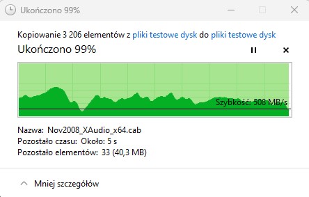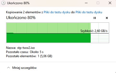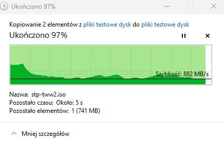 To samo potwierdza porównanie wykresów prędkości kopiowania z poziomu Windowsa: