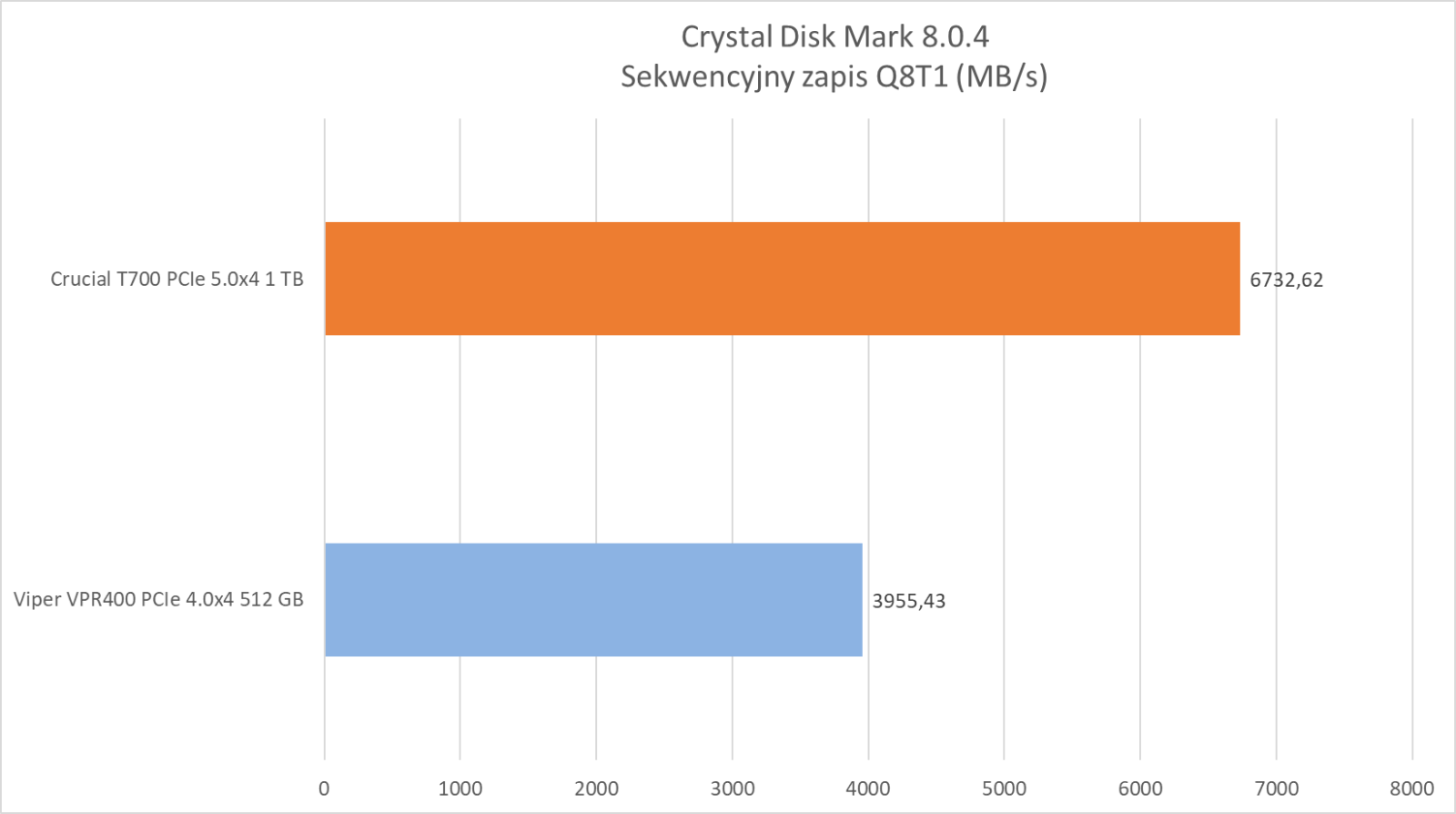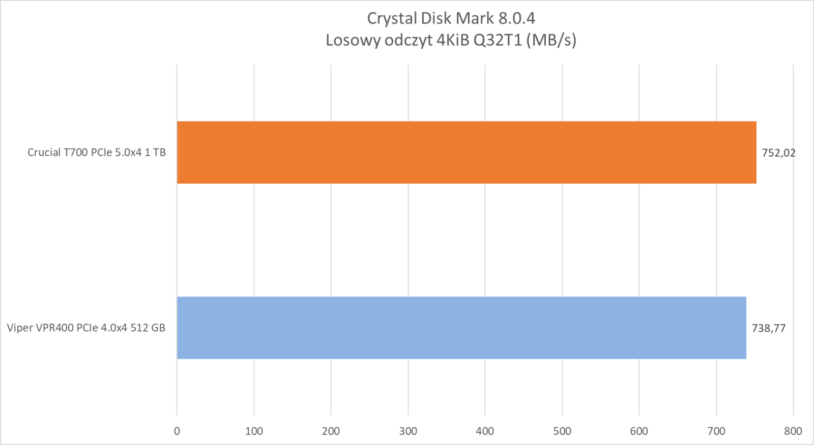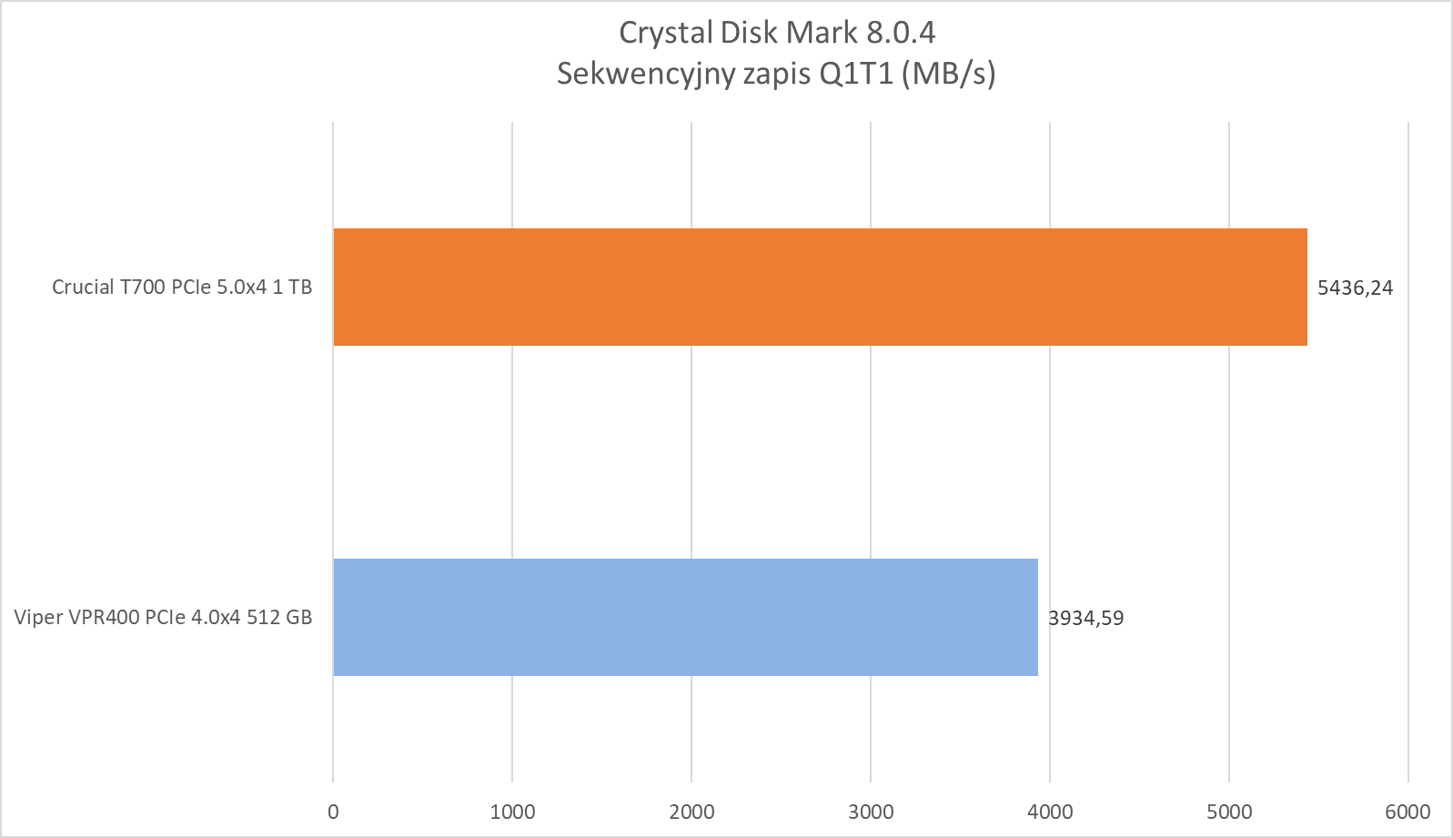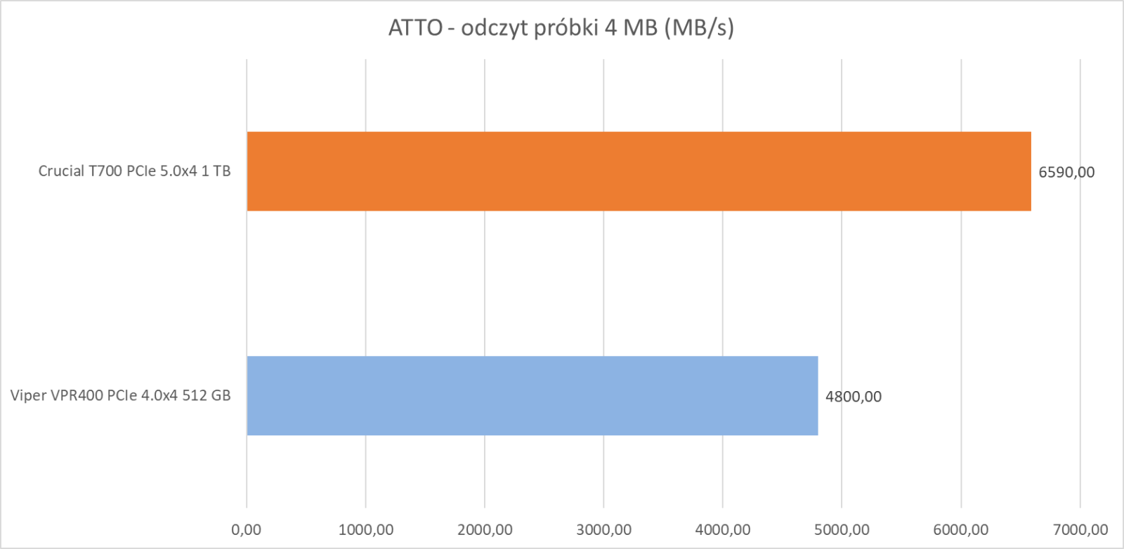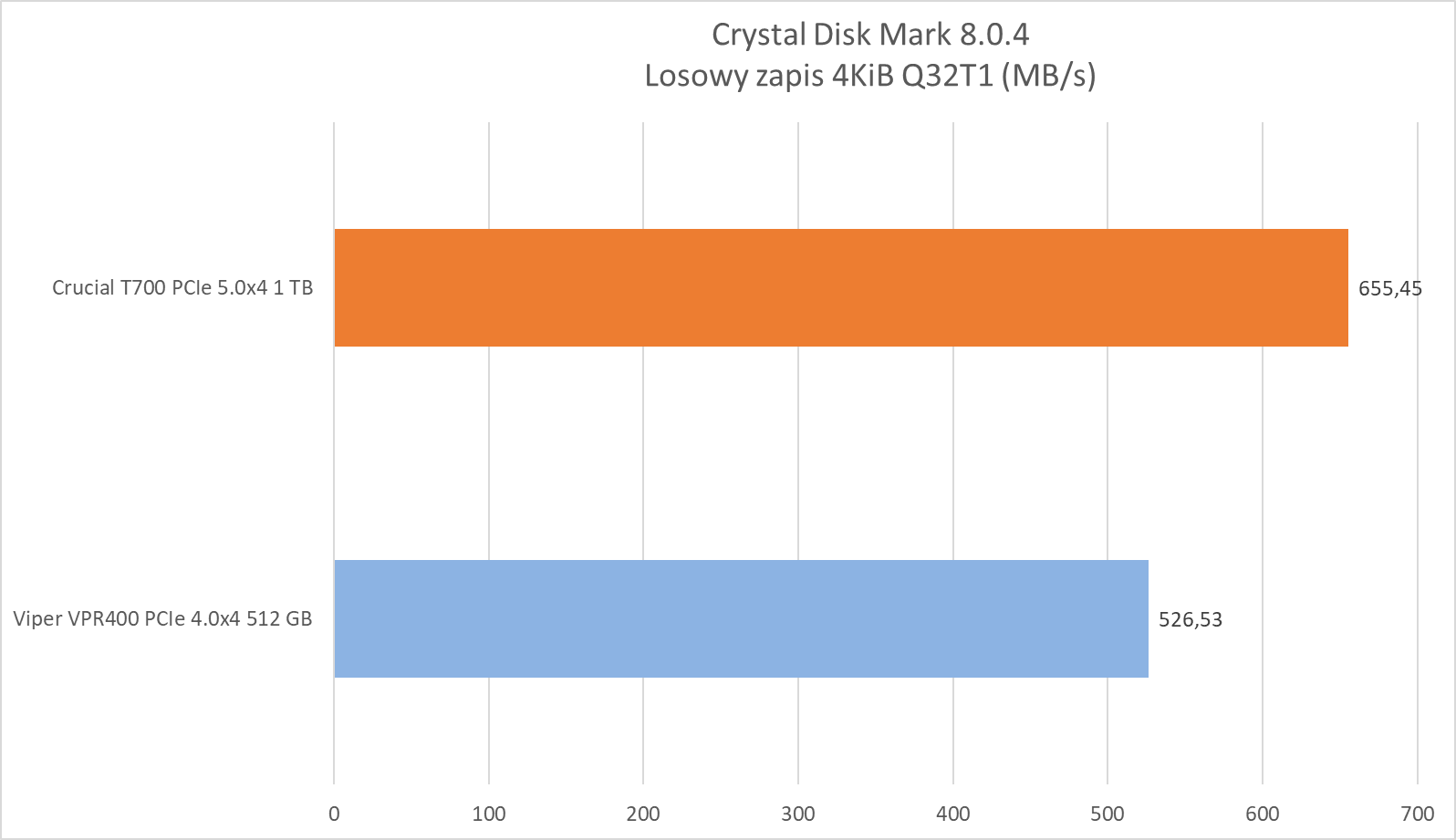Można spytać – gdzie ta wydajność? Producent obiecywał pięciocyfrowe wyniki, a tu proszę, oba programy nie przekroczyły nawet poziomu 8000 MB/s. Wyższą wydajność T700 widać jednak, jak na dłoni, choć momentami różnica nie jest tak wielka, jakbyśmy tego chcieli.