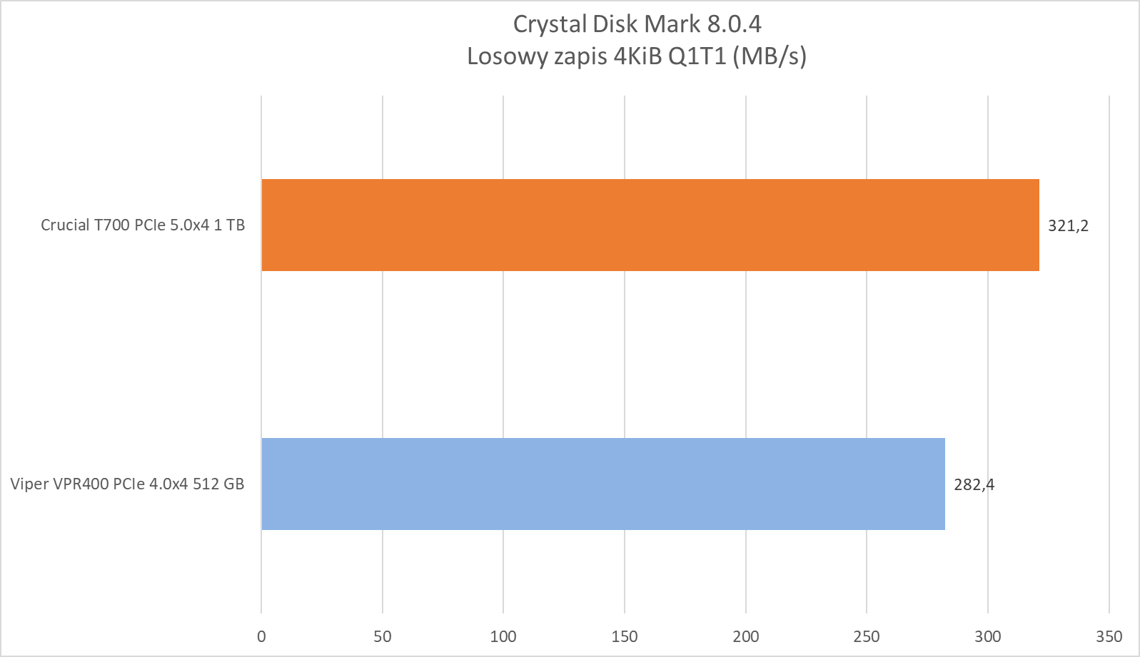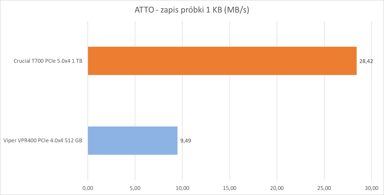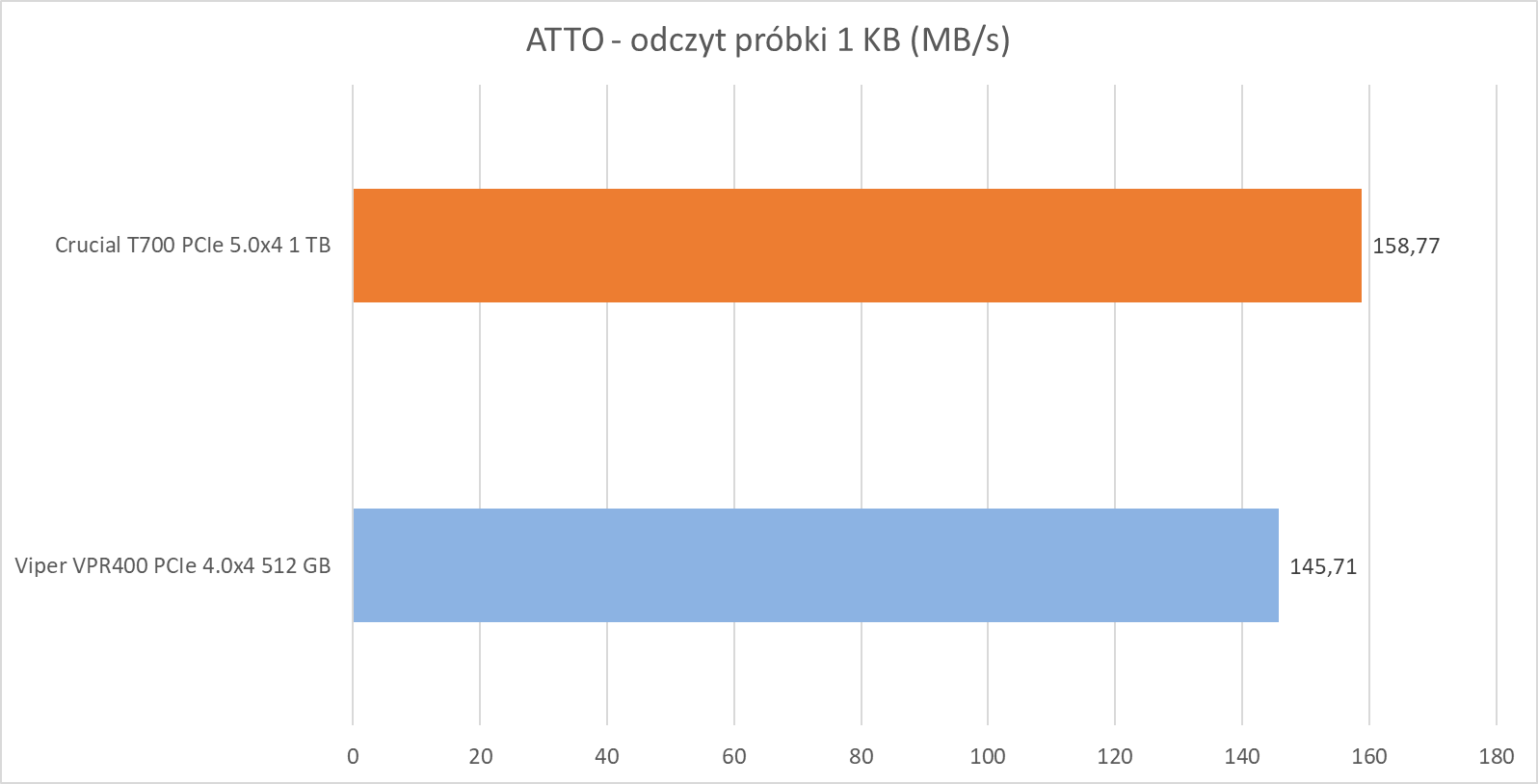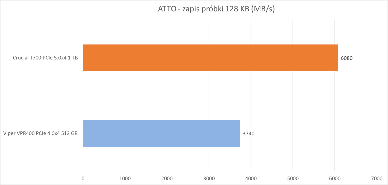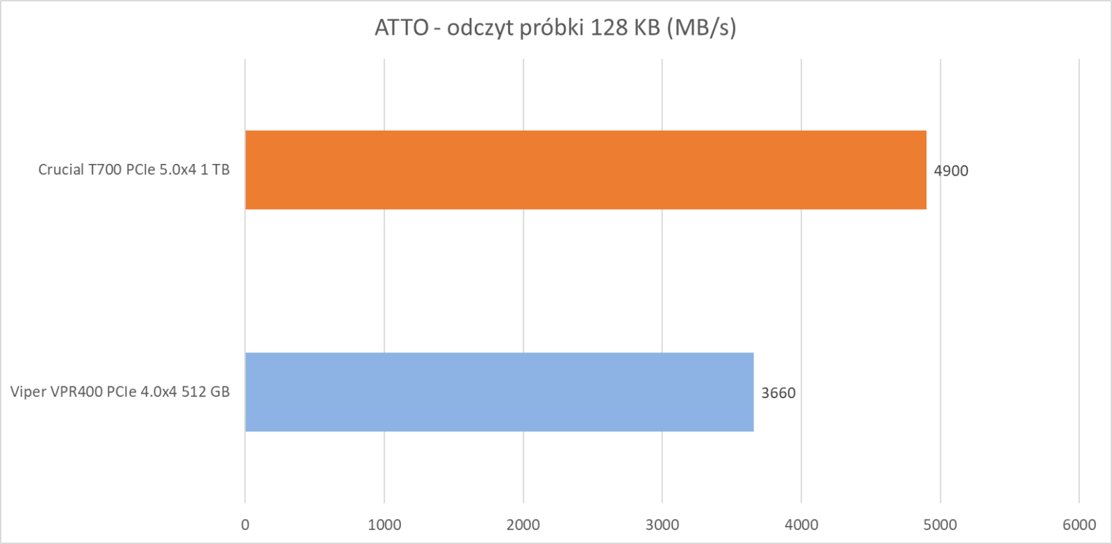 Można spytać – gdzie ta wydajność? Producent obiecywał pięciocyfrowe wyniki, a tu proszę, oba programy nie przekroczyły nawet poziomu 8000 MB/s. Wyższą wydajność T700 widać jednak, jak na dłoni, choć momentami różnica nie jest tak wielka, jakbyśmy tego chcieli.