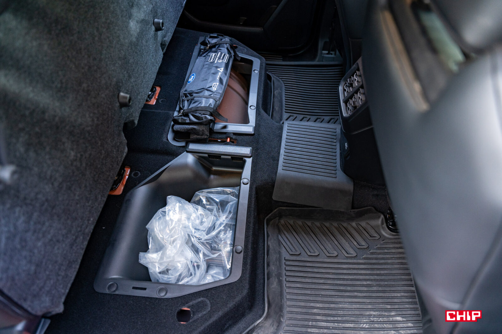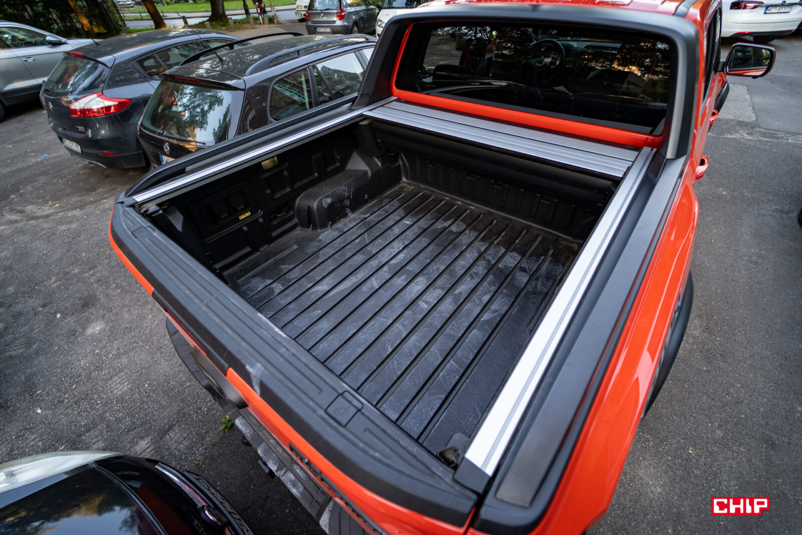 Możecie zapytać – jak to? Przecież pół tego auta to jeden wielki bagażnik. W zasadzie to tak, mamy do dyspozycji całą pakę, z opcjonalną, sterowaną elektronicznie roletą (przyciskiem przy kierownicy lub na pace, obok którego opcjonalnie możemy mieć gniazdko 230V). Życzę powodzenia w wożeniu tam zakupów, walizek przy plecaków. O ile nie zaopatrzycie się w dodatkowe siatki utrzymujące bagaż, ogromny bagażnik pozostanie w zasadzie tylko ozdobą lub przyda się podczas okazyjnego wożenia mebli. Idę o zakład, że szczególnie w Polsce, tylko promil nabywców kupi Raptora do pracy.