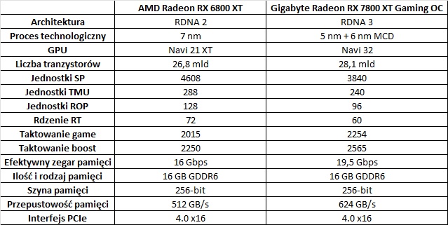 Specyfikacja Gigabyte Radeon RX 7800 XT Gaming OC