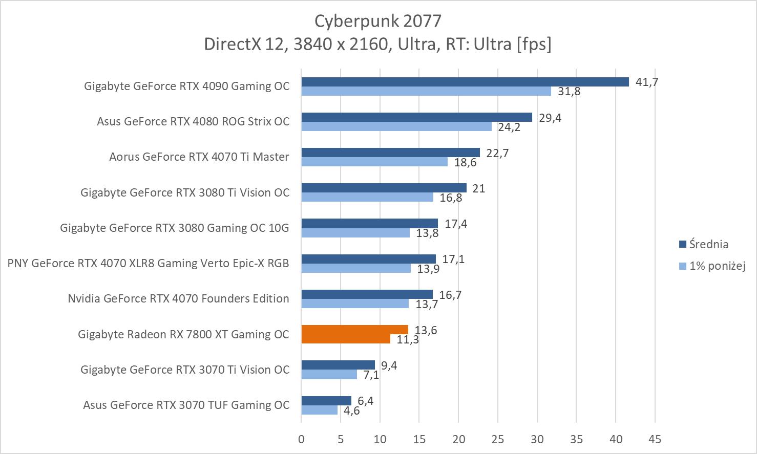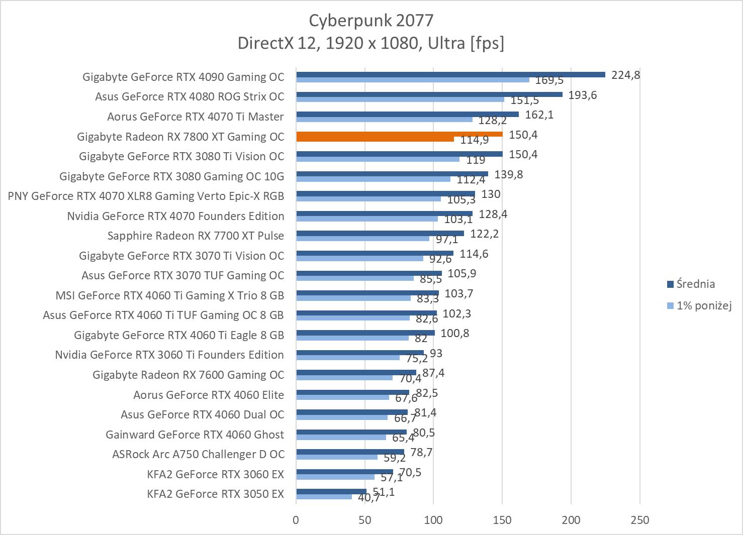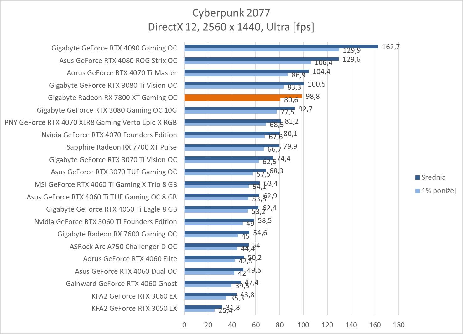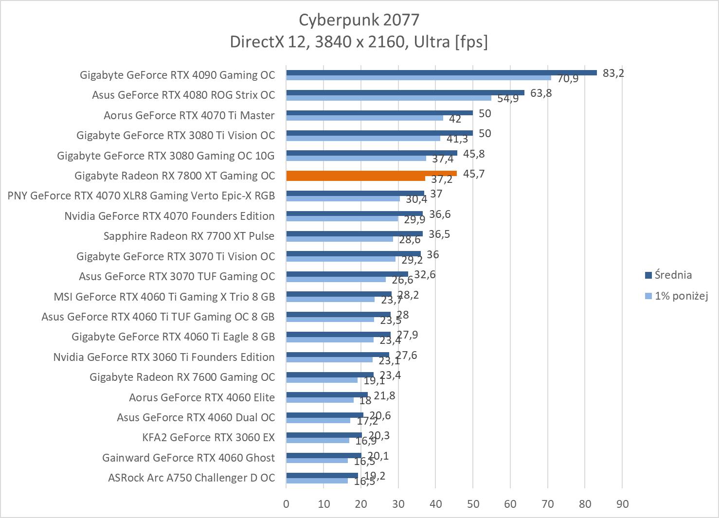 Radeon RX 7800 XT w wersji podstawowej wyceniony został na 2699 zł. Model Gigabyte będzie pewnie trochę droższy ze względu na fabryczne OC i autorską wersję. Najtańszy RTX 4070 to koszt ok. 2900 zł, więc jest dosyć blisko. Oczywiście jeśli cena będzie wynosiła trochę mniej niż 2699 zł, to nic lepszego w niej nie znajdziecie (nawet nie myślcie o RTX 4060 Ti 16 GB!) i jeśli macie taki budżet to będziecie zadowoleni z zakupu. Ale sytuacja względem RTX 4070 nie jest taka prosta.