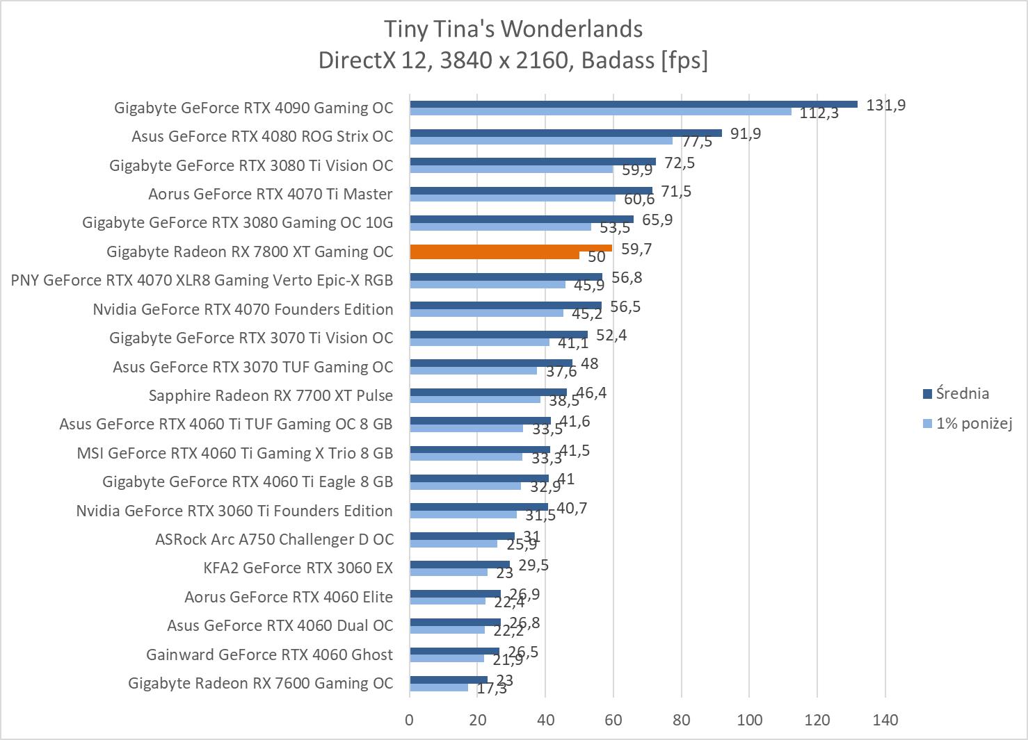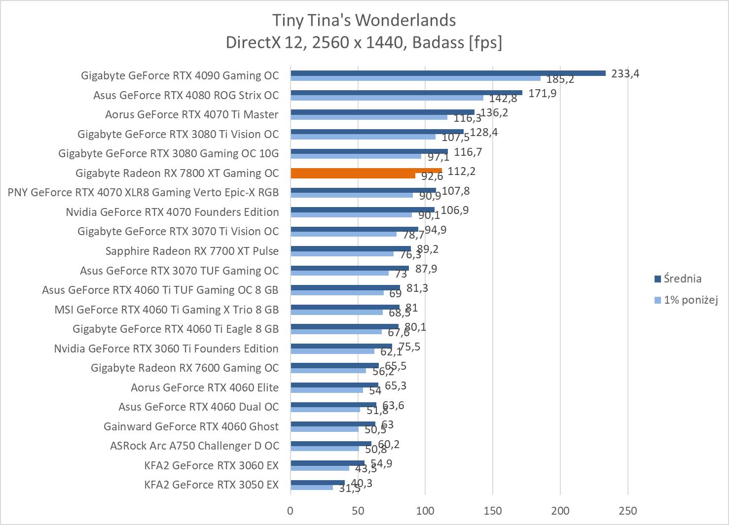 W ostatniej rozdzielczości nie jest źle, ale tylko w dwóch grach zanotowałem powyżej 60 fps. Przyda się tutaj FSR, aby zwiększyć wyniki w pozostałych tytułach.