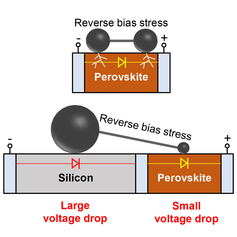 Zupełnie inaczej sprawa się ma, gdy połączymy krzemową i perowskitową technologią. Od niedawna nad hybrydowymi ogniwami słonecznymi pracują naukowcy z saudyjskiego KAUST (King Abdullah University of Science and Technology), o dokonaniach których pisaliśmy już niejednokrotnie. Tym razem wespół z badaczami z Uniwerystetu z Princeton przeanalizowano odporność trzech rodzajów ogniw w przypadku polaryzacji zaporowej (reverse bias stress). Wyniki opublikowano w Joule.